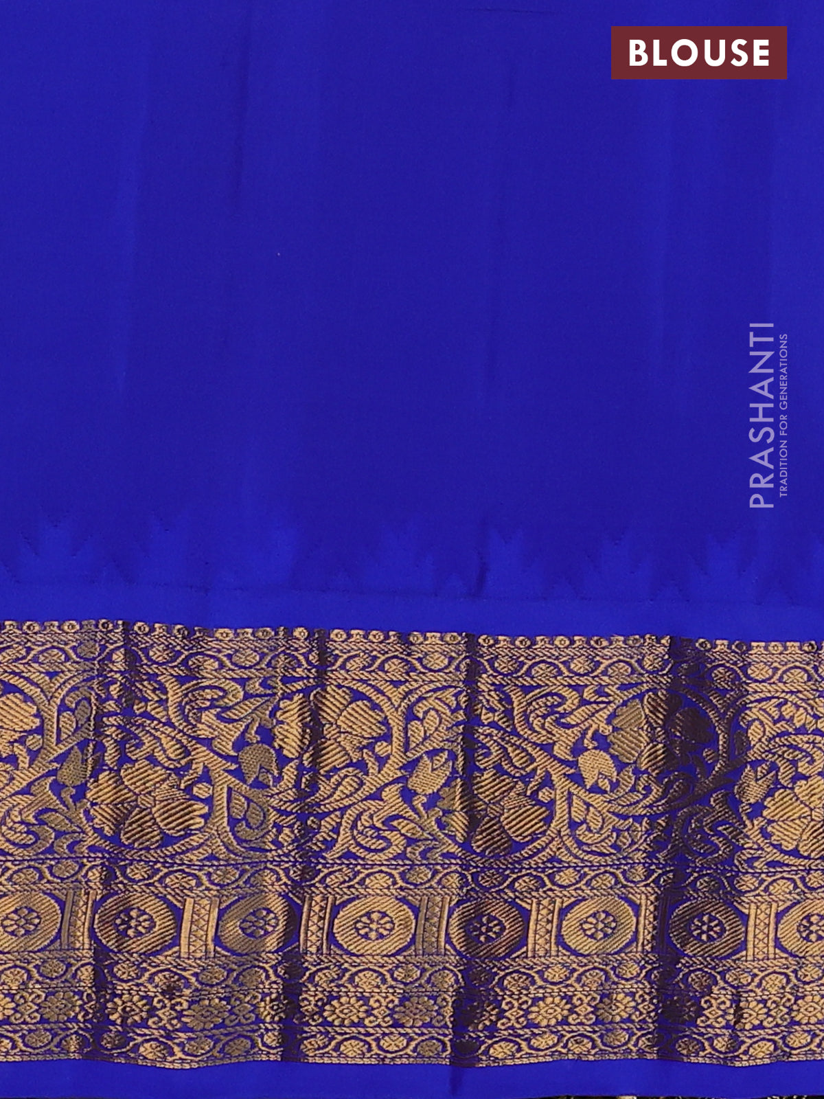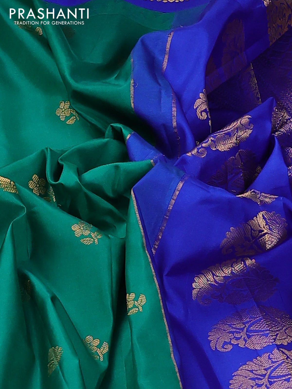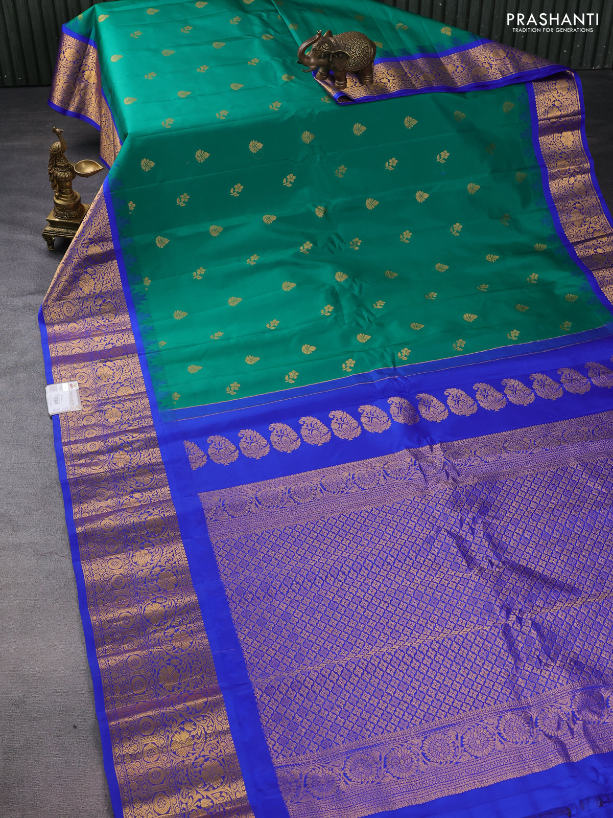 Pure gadwal silk saree green and blue with zari woven buttas and temple design zari woven border