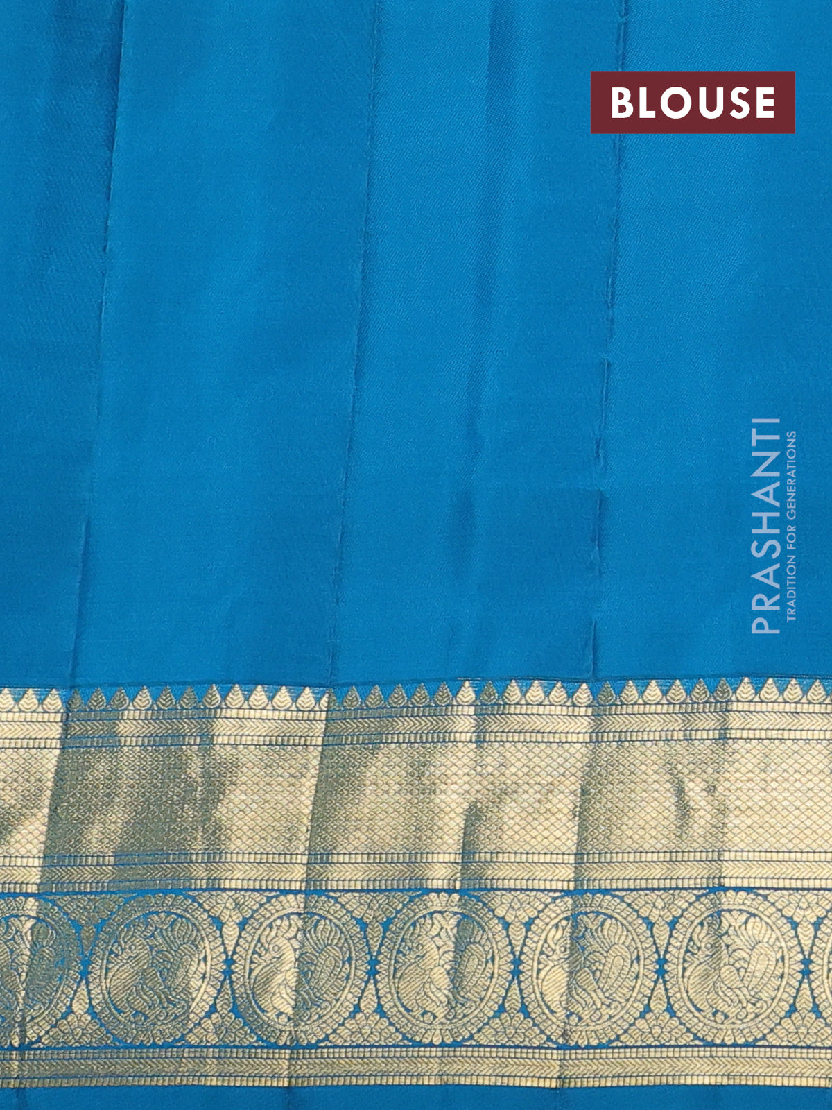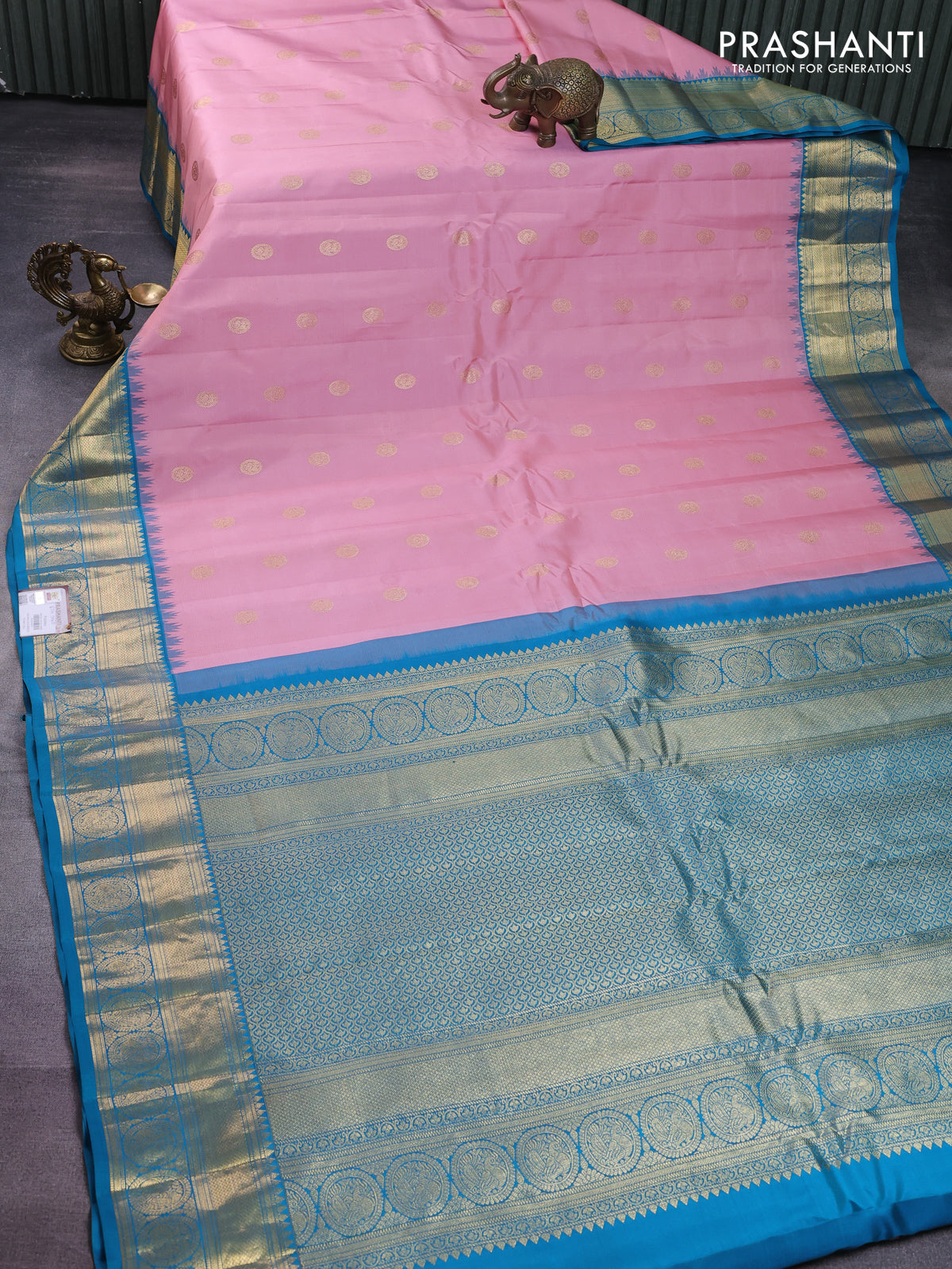 Pure gadwal silk saree peach pink shade and teal blue with zari woven buttas and rich zari woven korvai border