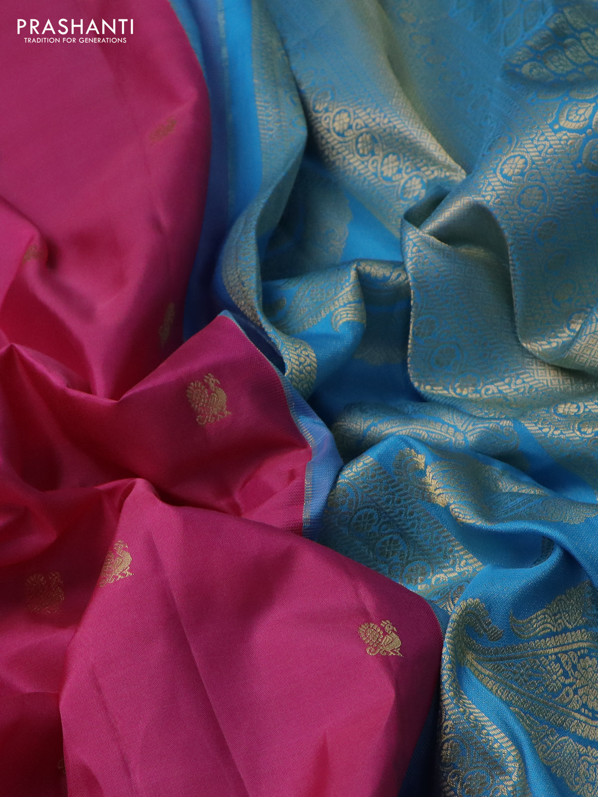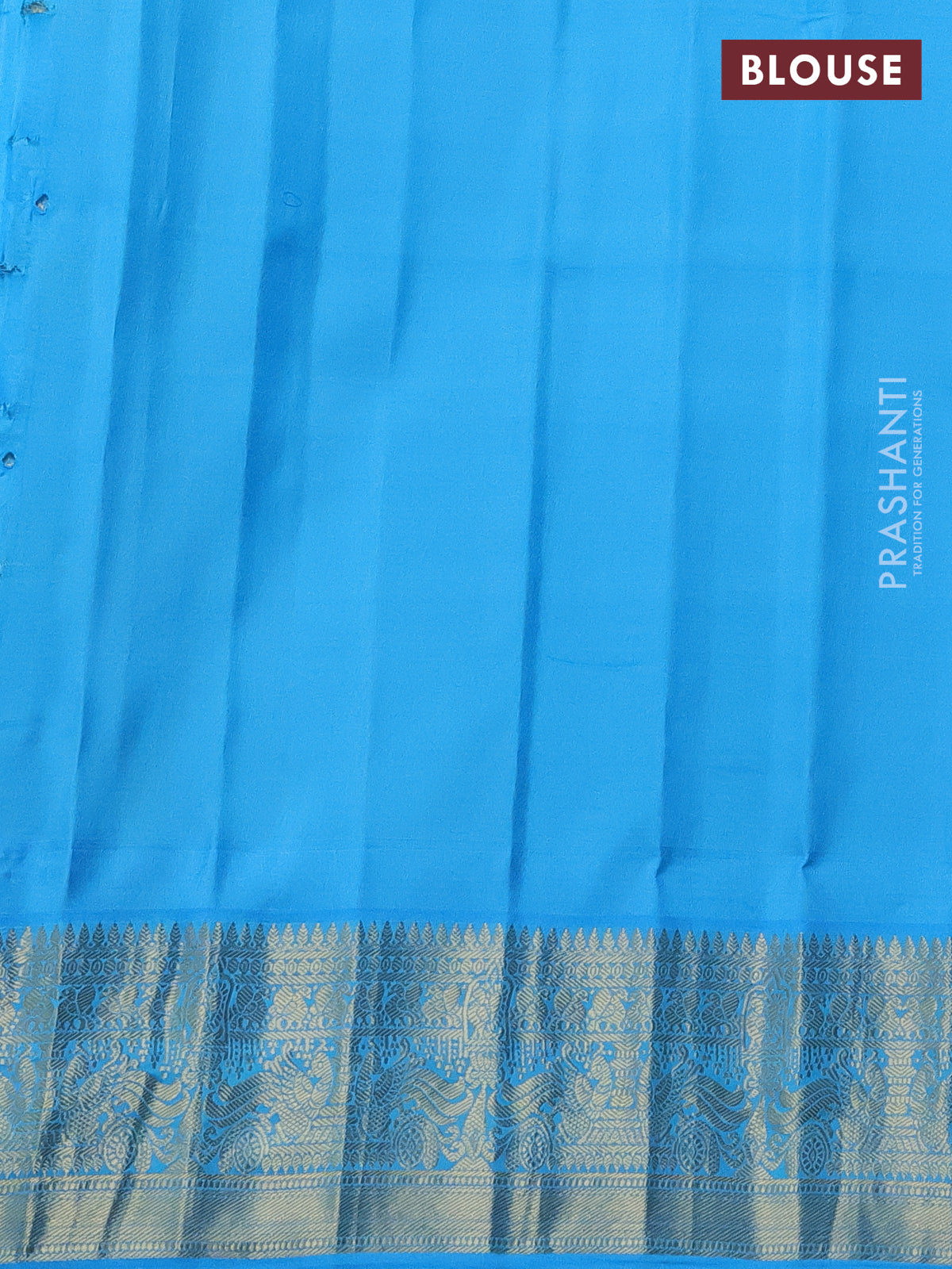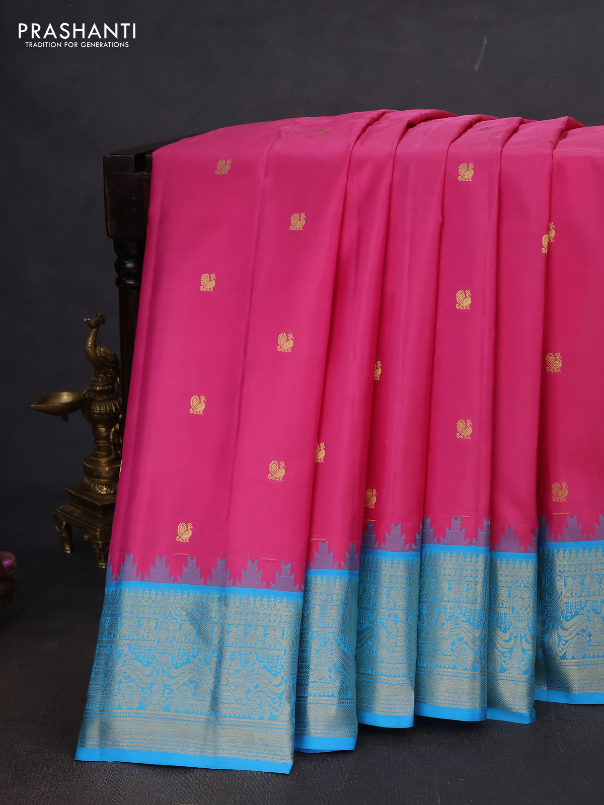 Pure gadwal silk saree pink and light blue with annam zari woven buttas and temple design zari woven border