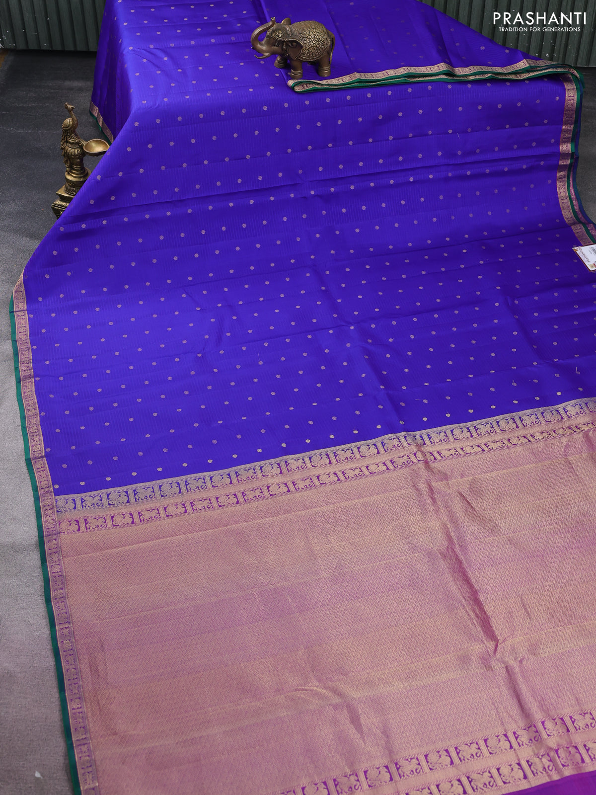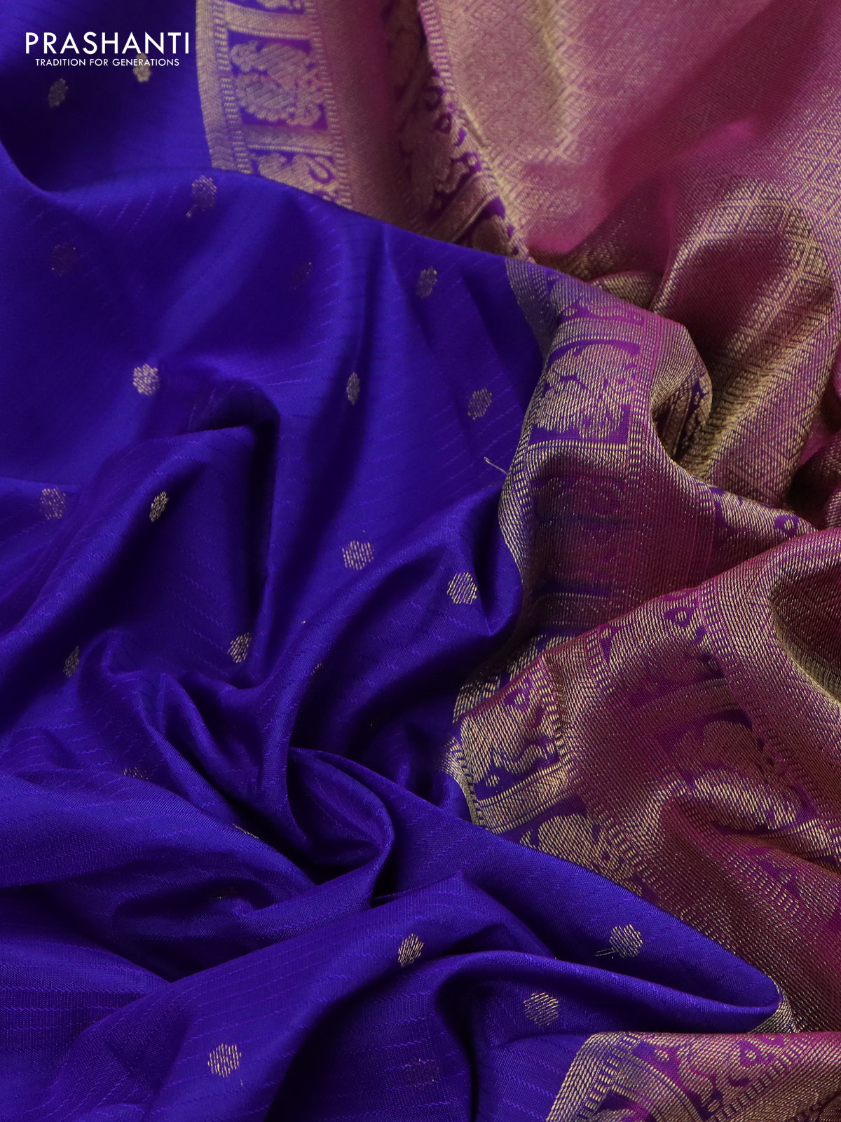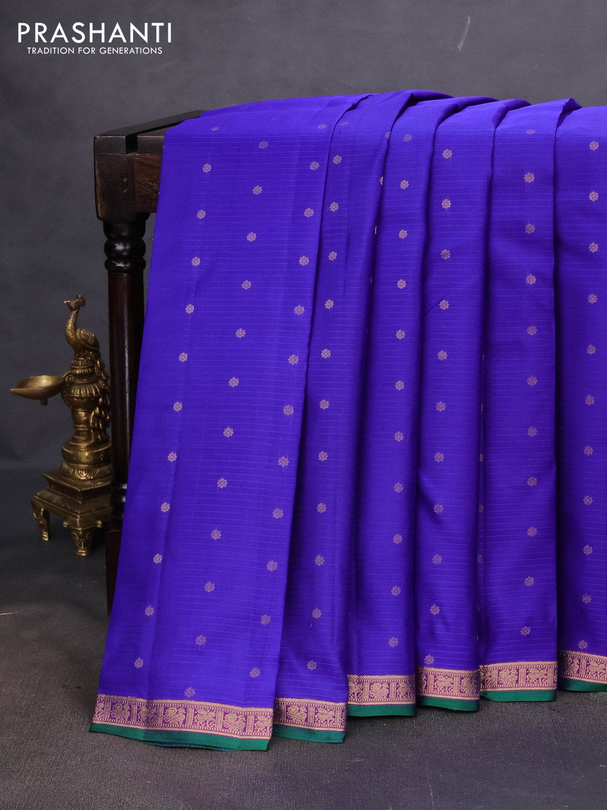 Pure kanchipuram silk saree blue and purple with allover stripe pattern & zari woven buttas and small zari woven border