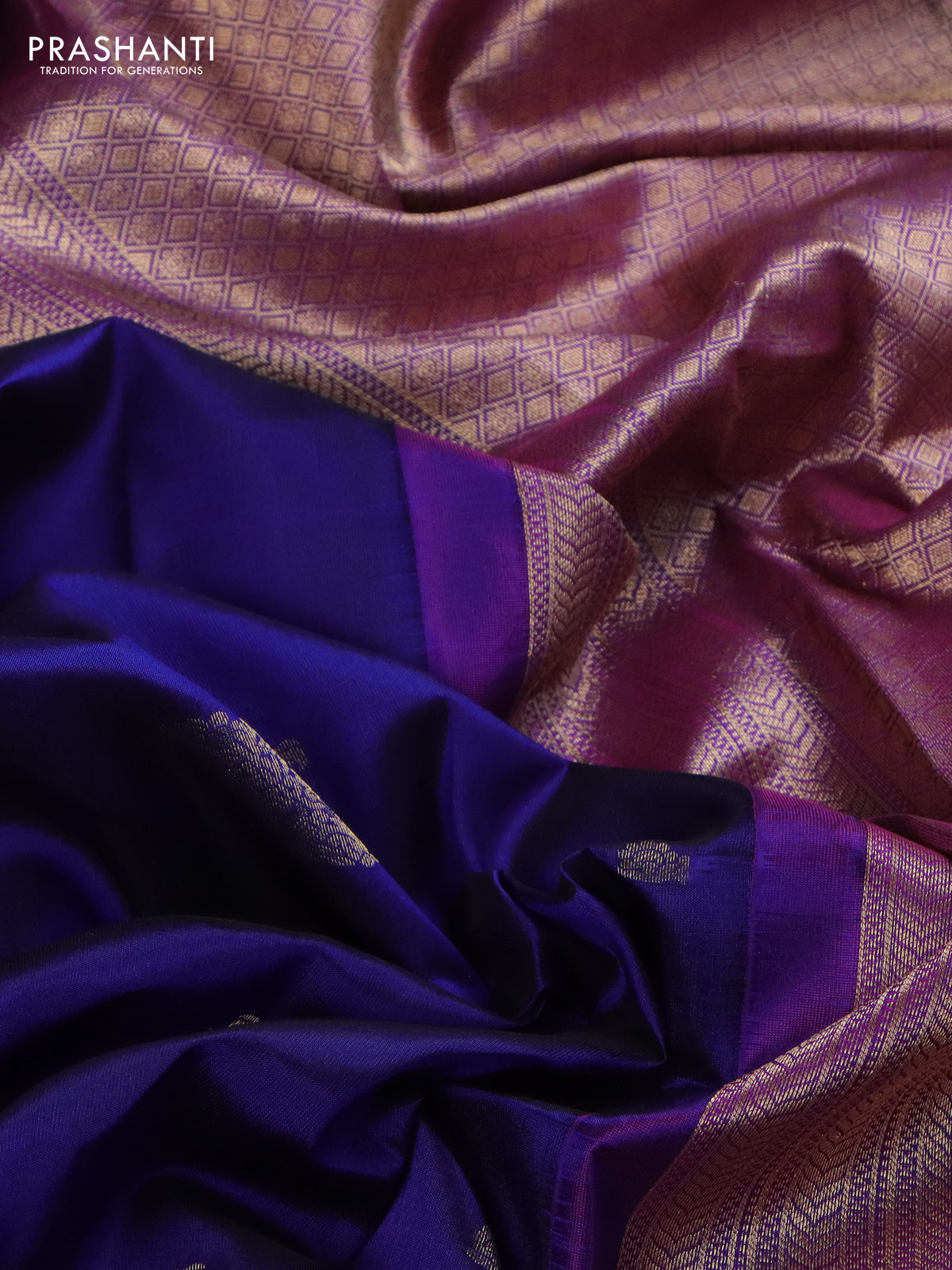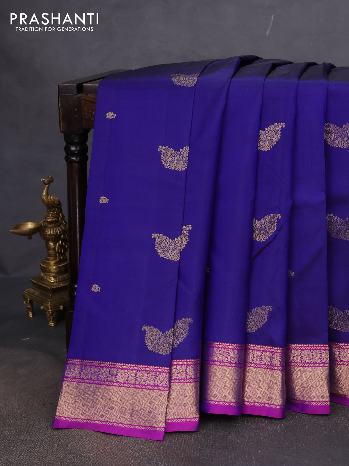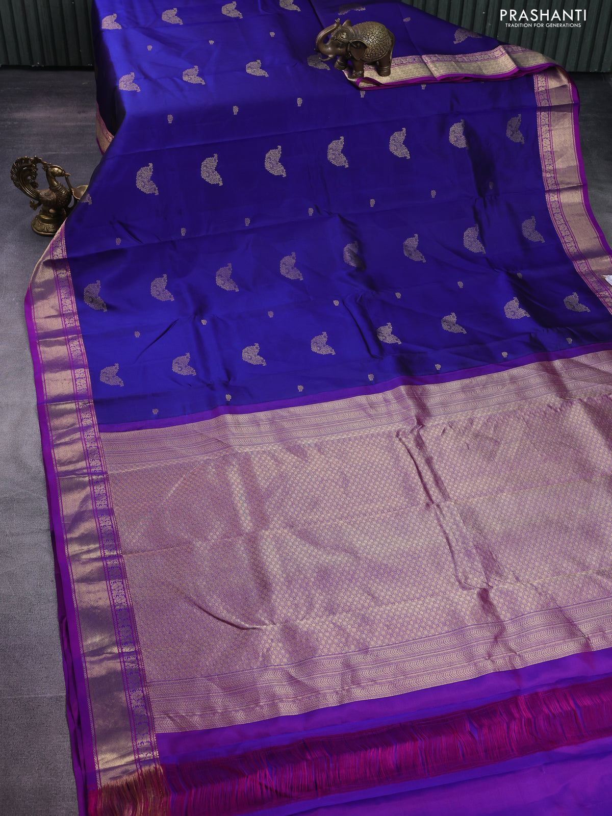 Pure kanchipuram silk saree blue and purple with zari woven buttas and rich zari woven border