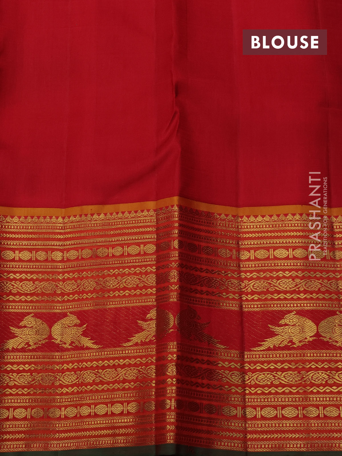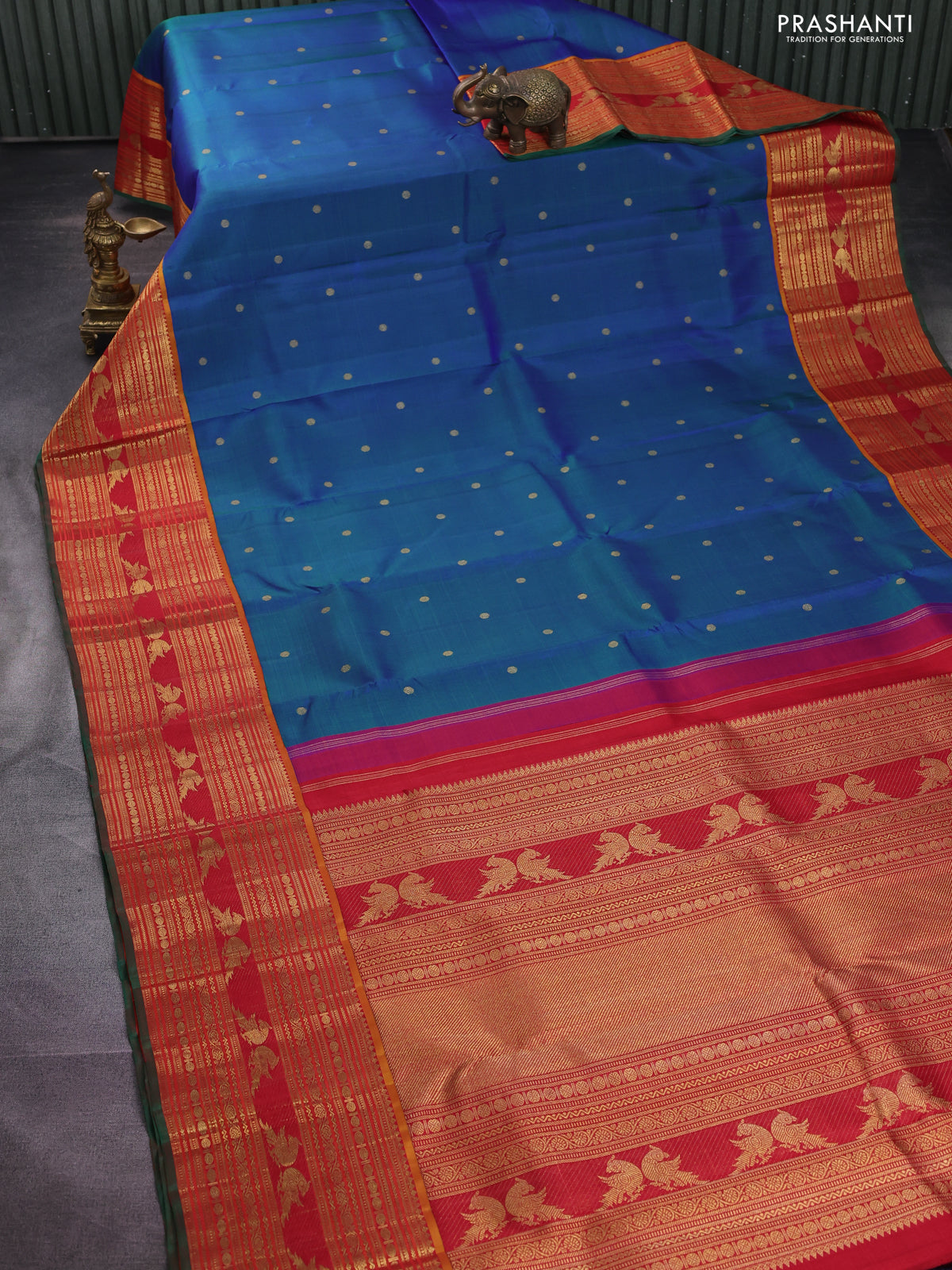 Pure kanchipuram silk saree blue and red with zari woven buttas and zari woven border