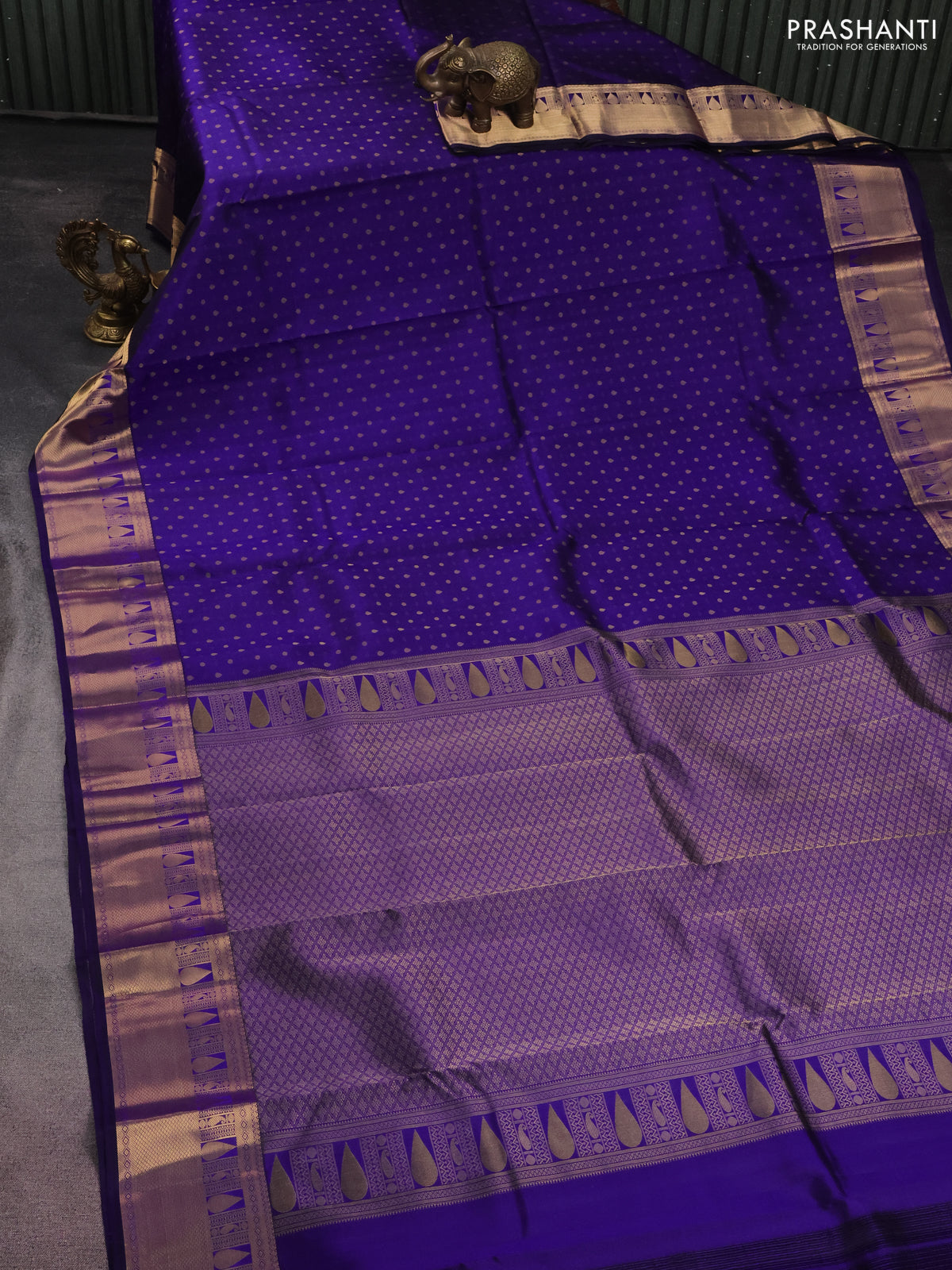 Pure kanchipuram silk saree blue with zari woven 1000 buttas and zari woven border
