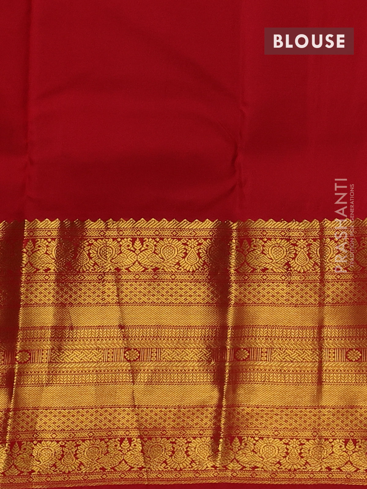 Material : Pure Kanchipuram Silk SILK MARK CERTIFIED Blouse : Attached Length of saree : 6.2 mts (5.5 mts saree... Read more