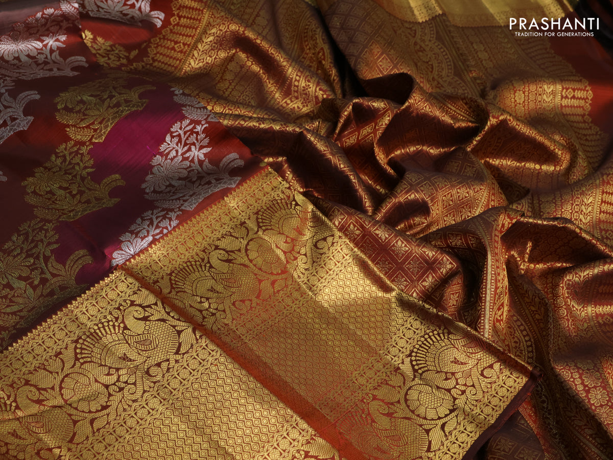 Pure kanchipuram silk saree brown with allover rangkat weaves and long annam zari woven border