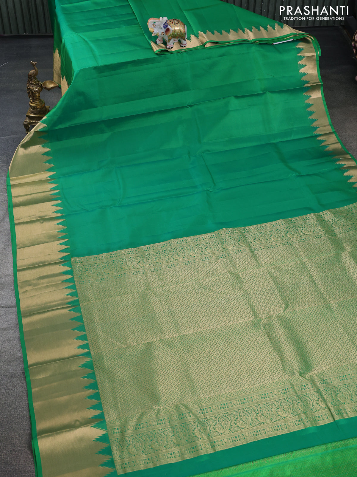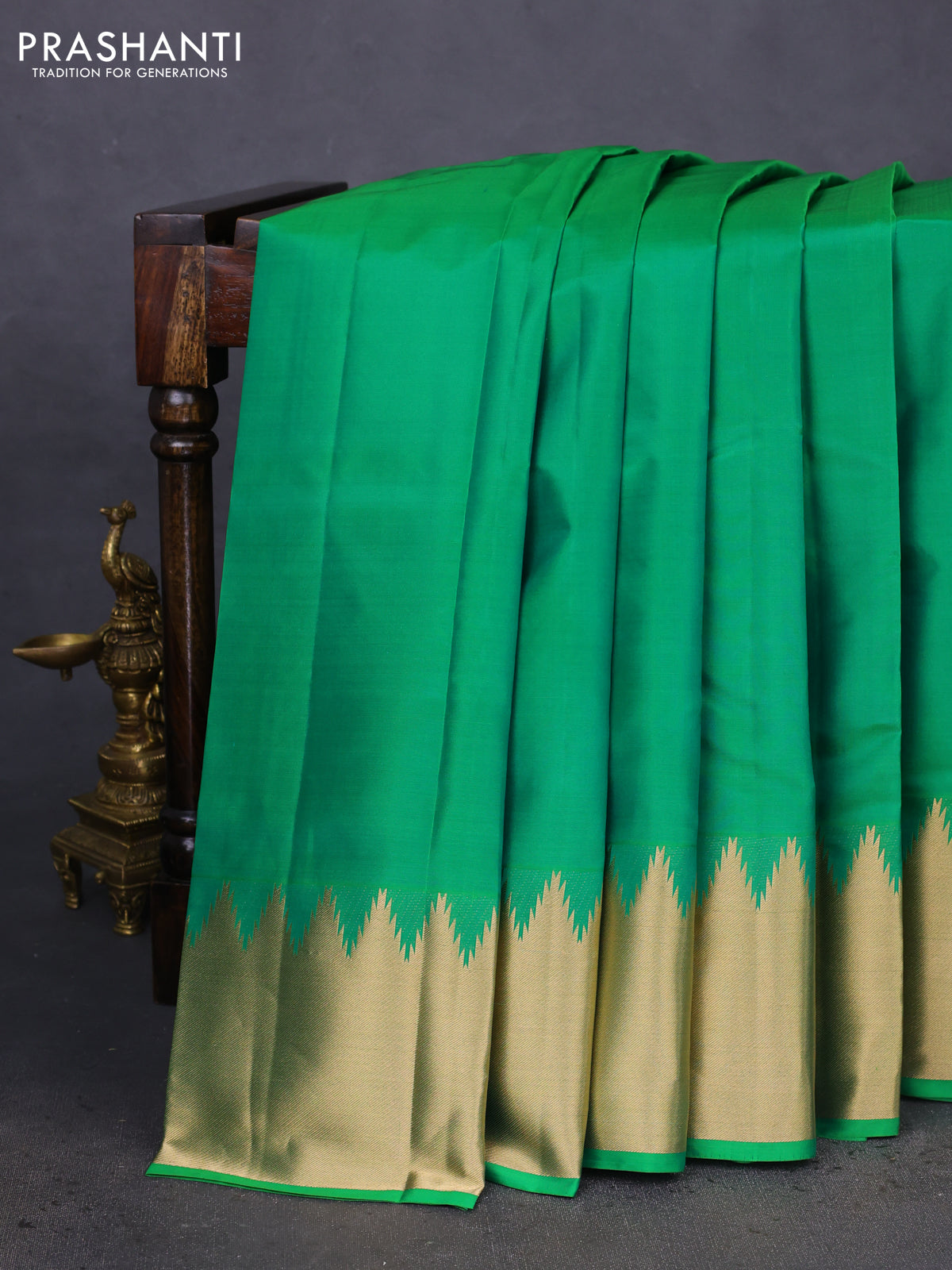 Pure kanchipuram silk saree cream with plain body and temple design zari woven border