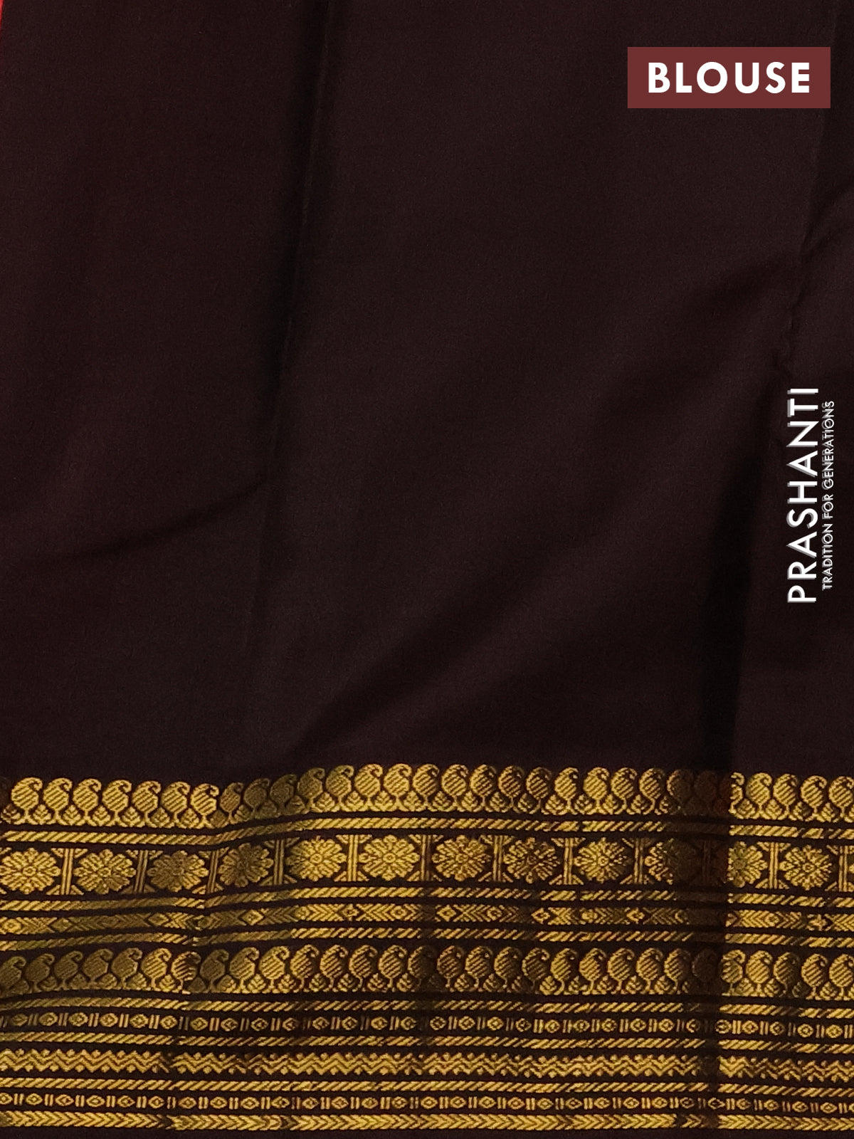 Pure kanchipuram silk saree dual shade of pinkish orange and brown with zari woven buttas and zari woven korvai border