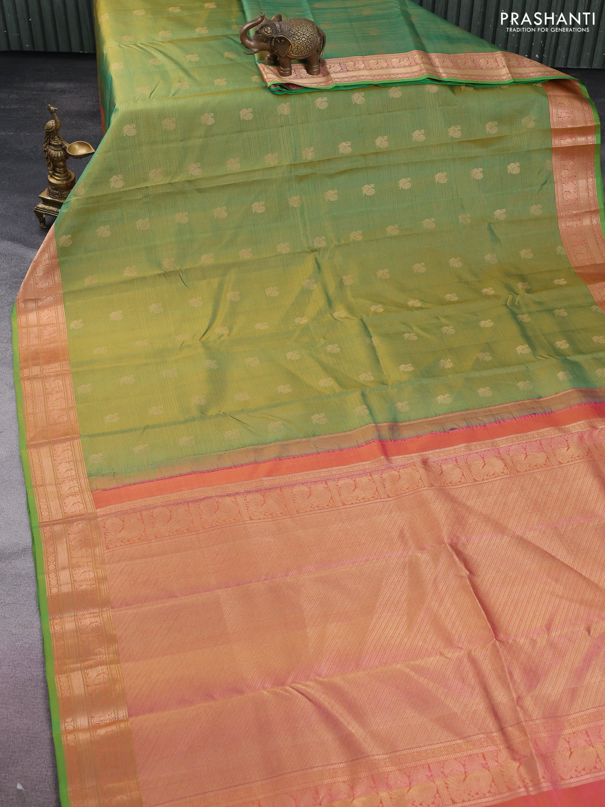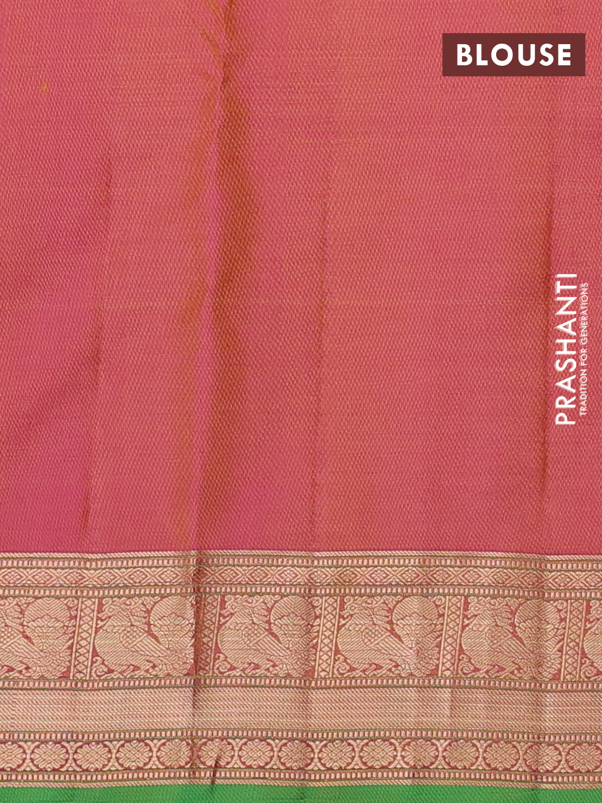 Pure kanchipuram silk saree dual shade of green and pink with allover vairosi pattern & annam zari buttas and annam zari woven border