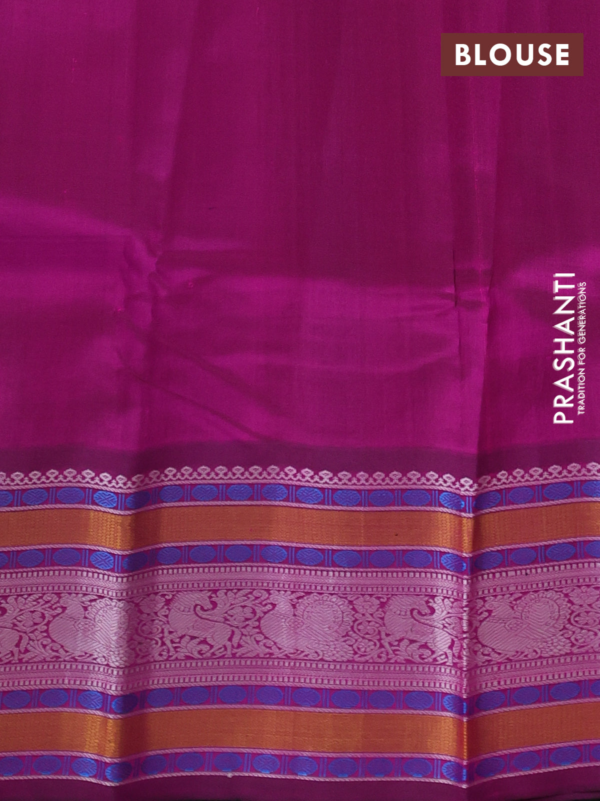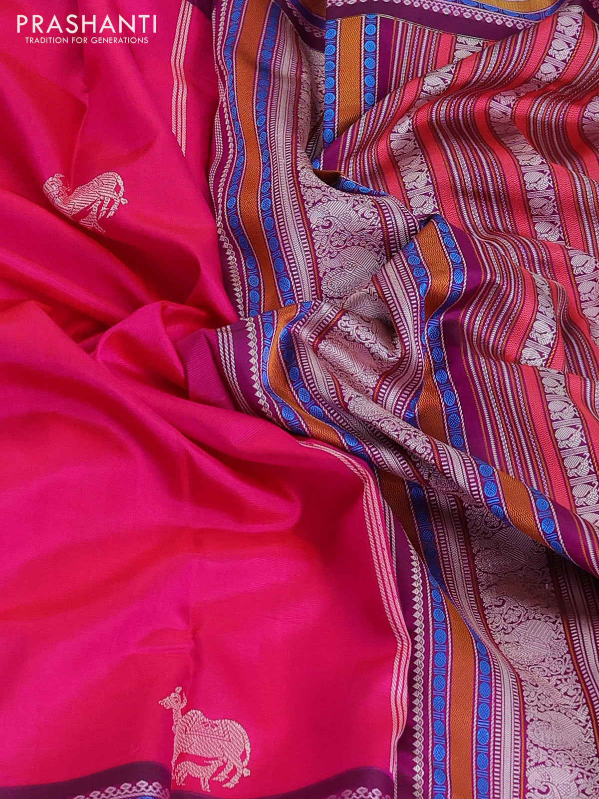 Pure kanchipuram silk saree dual shade of pink and dark magenta pink with thread woven buttas and long thread woven border