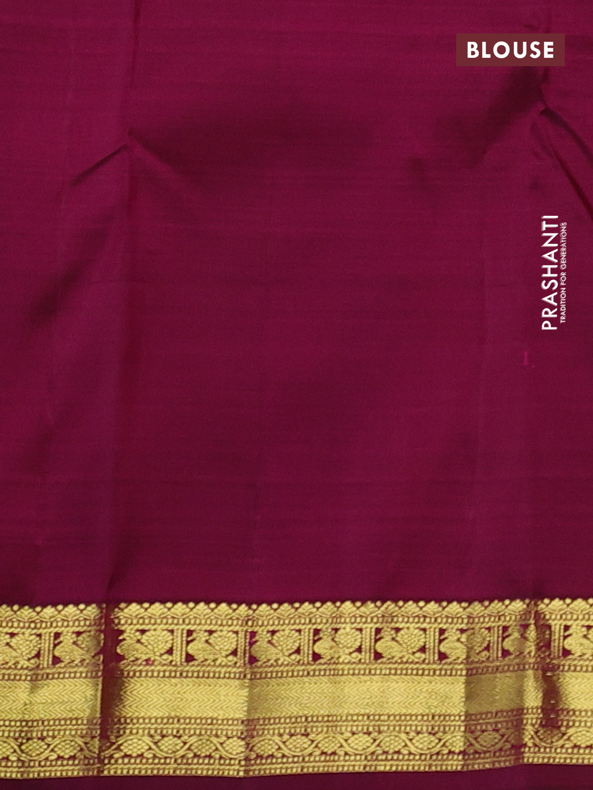 Pure kanchipuram silk saree dual shade of pinkish mustard and purple with zari woven buttas and rich zari woven border