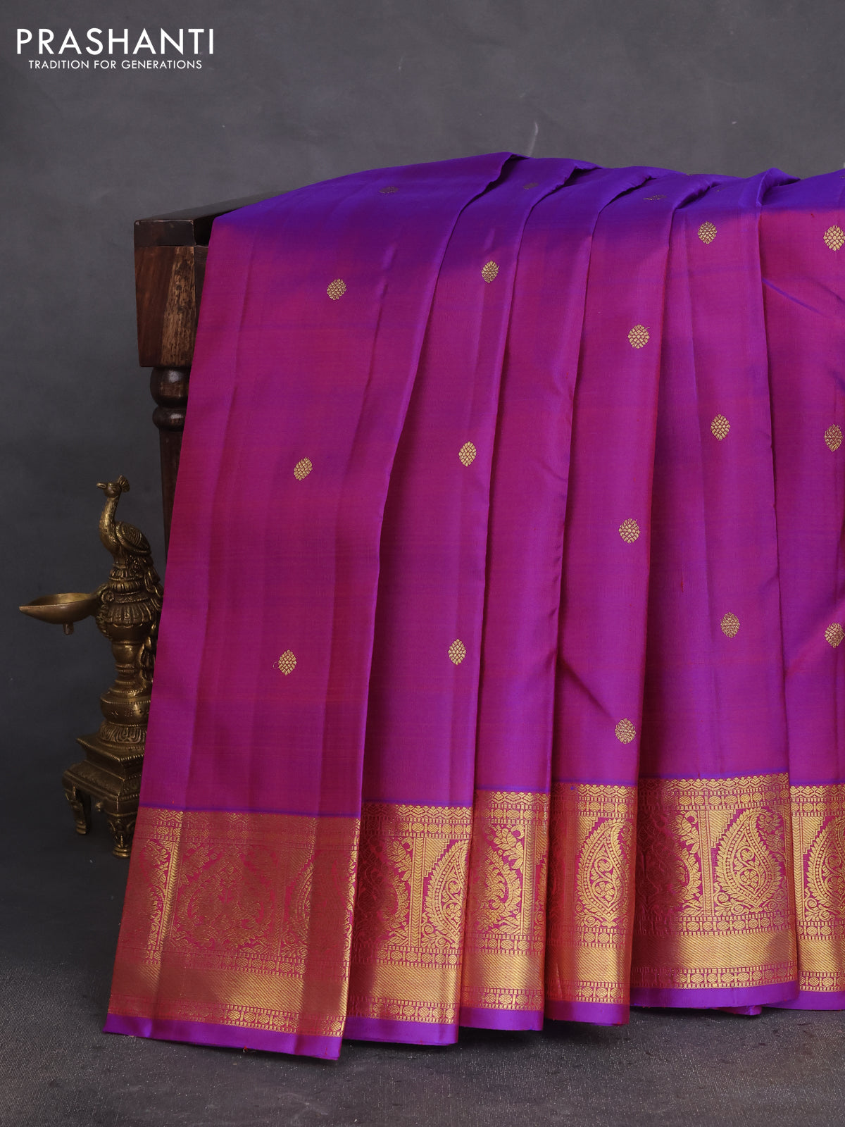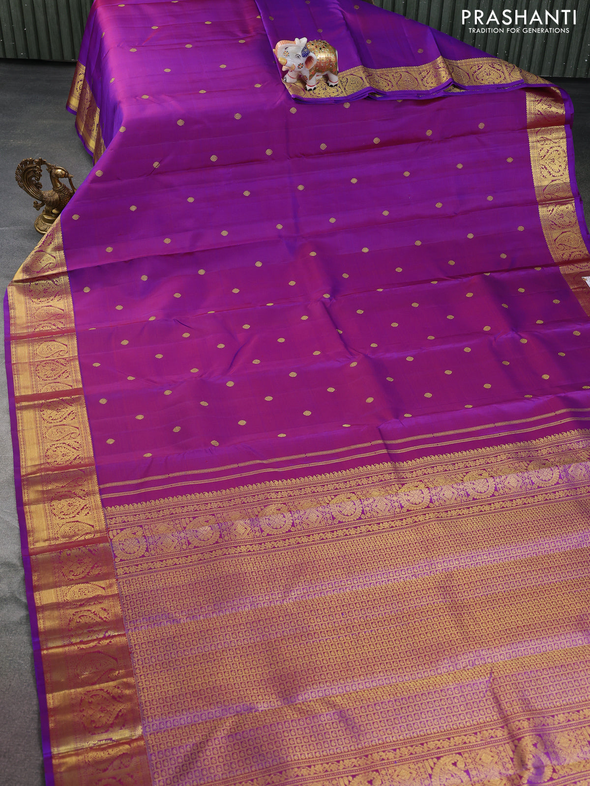 Pure kanchipuram silk saree dual shade of purple with zari woven buttas and rich zari woven border