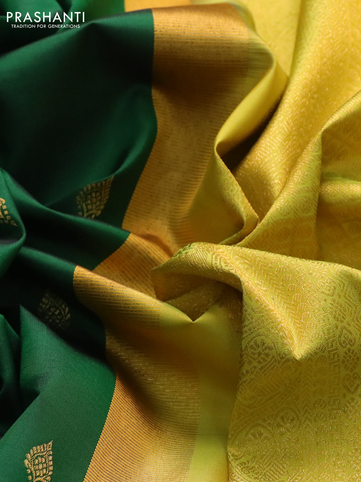 Pure kanchipuram silk saree green and lime green with woven zari buttas and temple design zari woven border