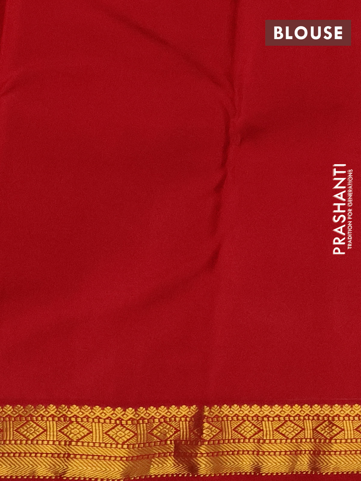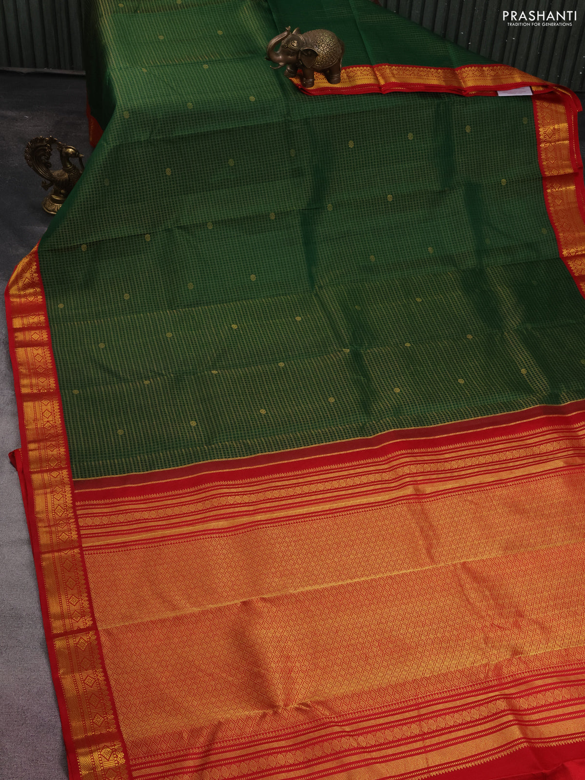 Pure kanchipuram silk saree green and red with allover small zari checks and zari woven korvai border