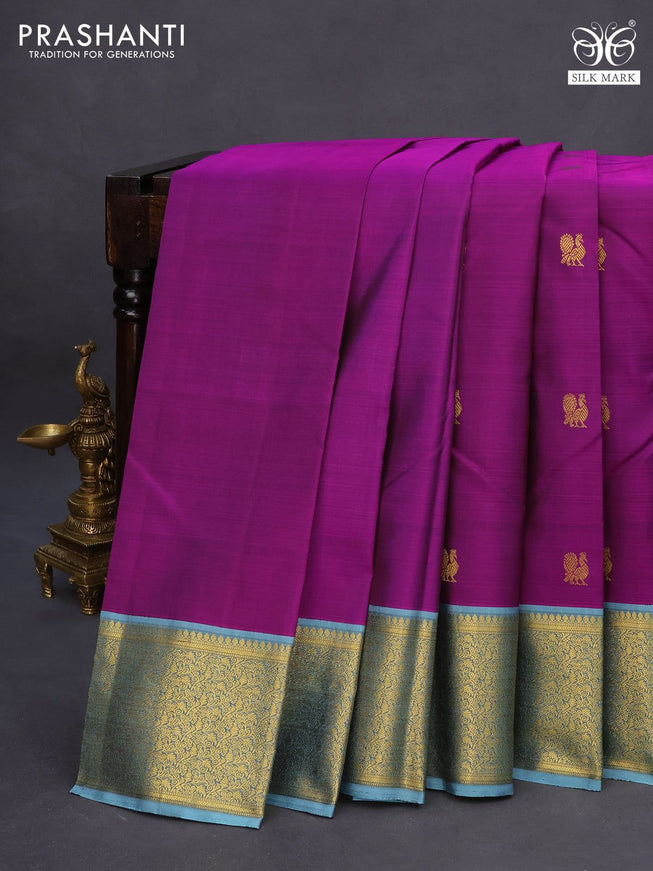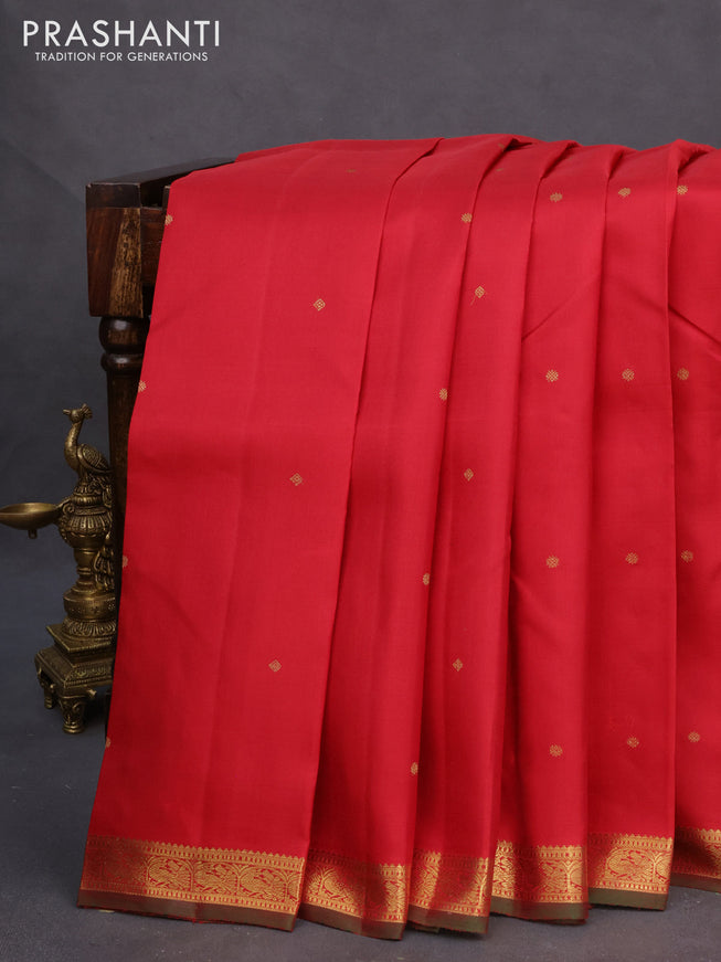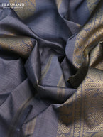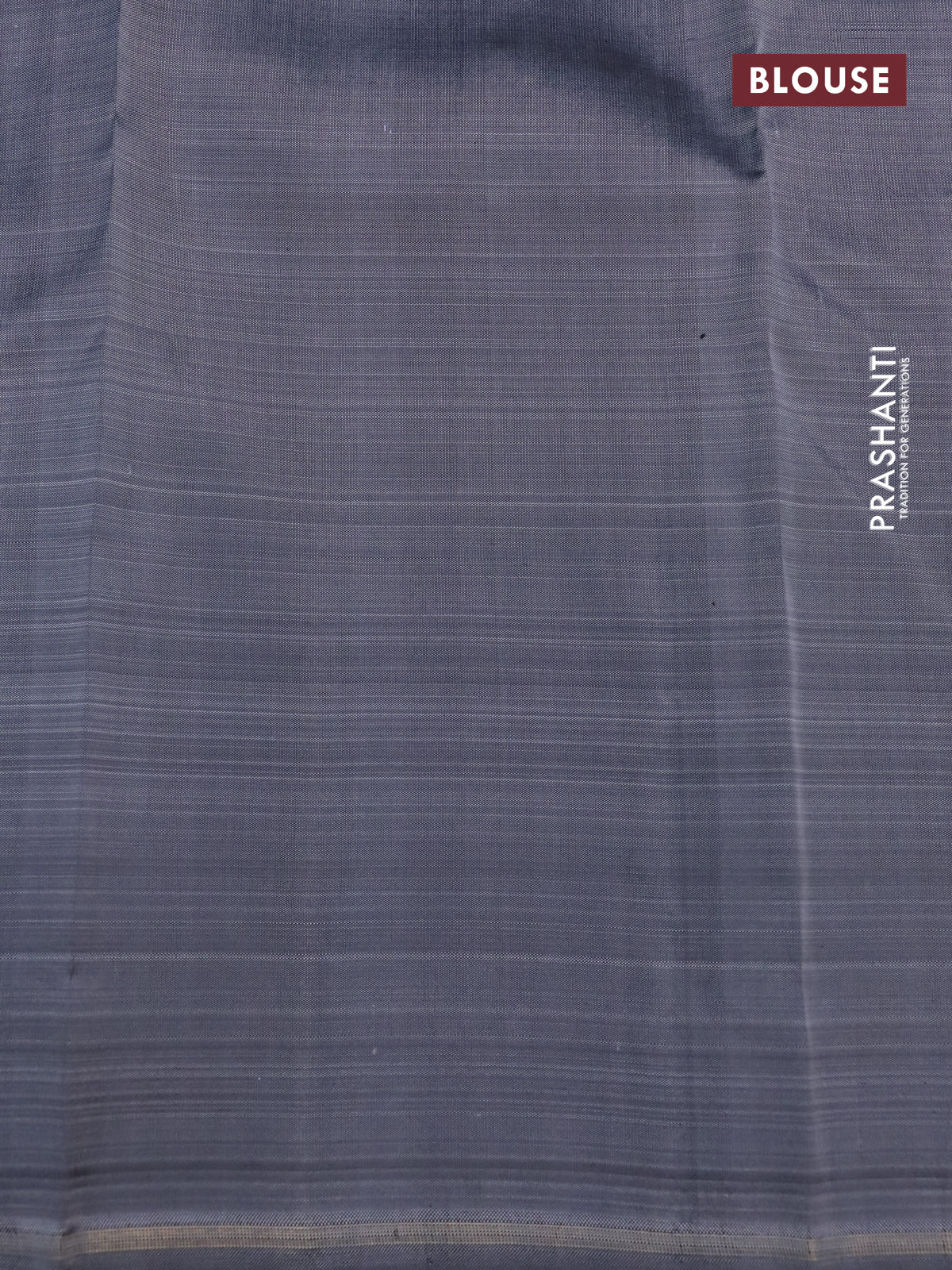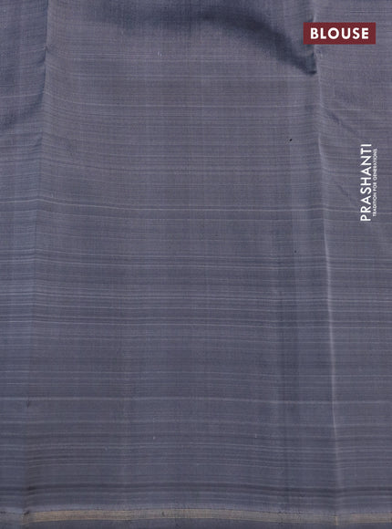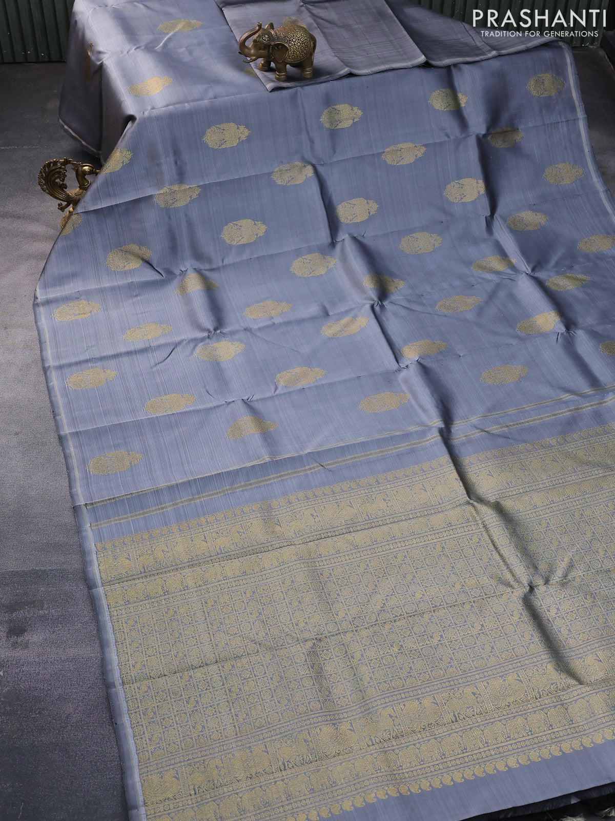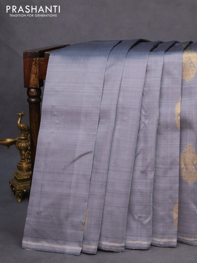 Pure kanchipuram silk saree grey with zari woven buttas in borderless style