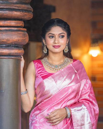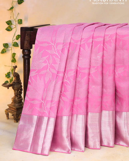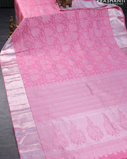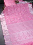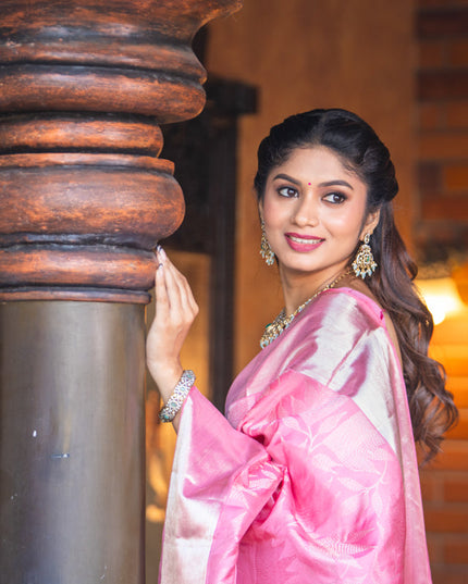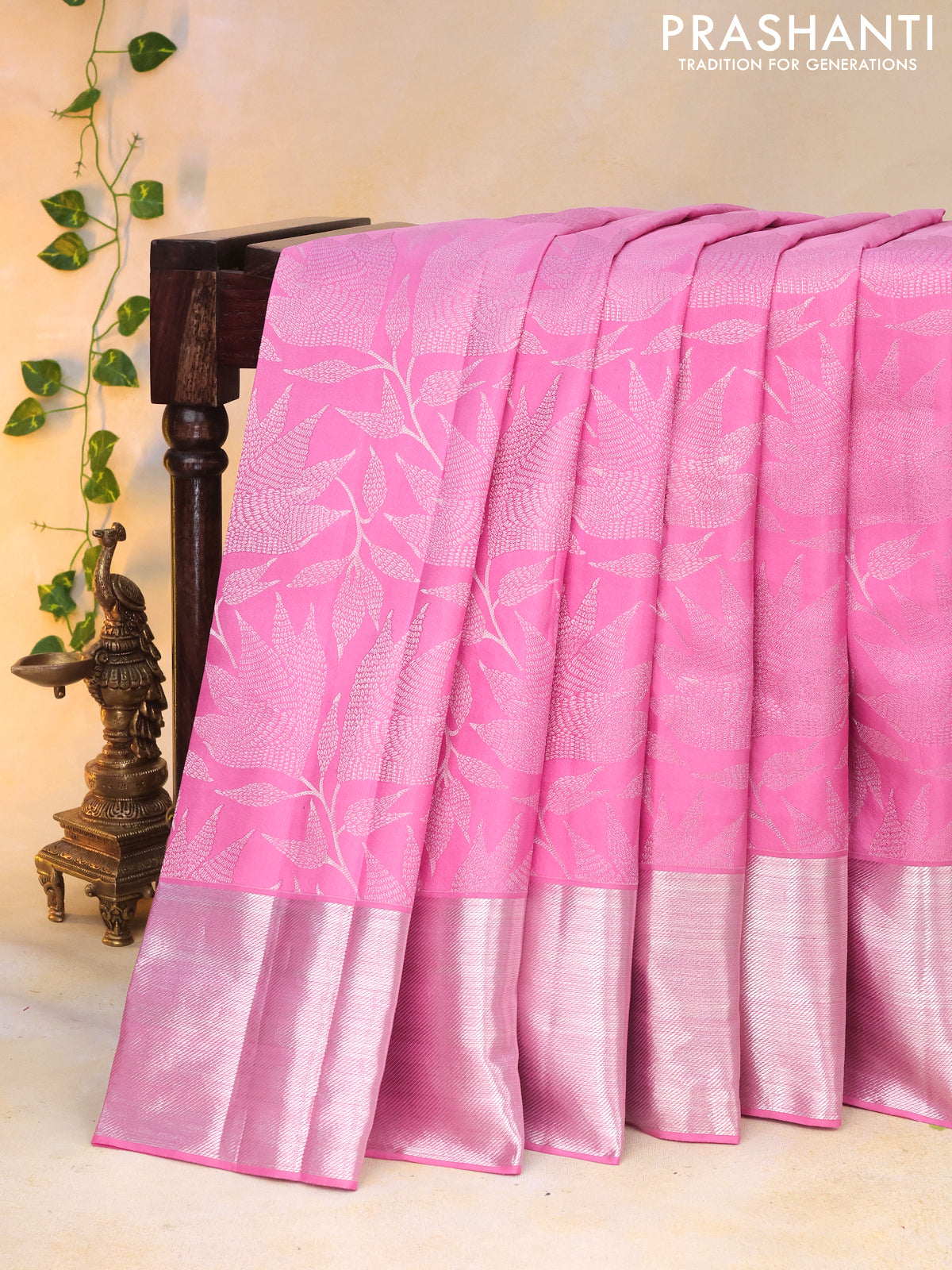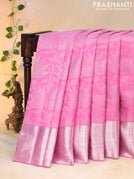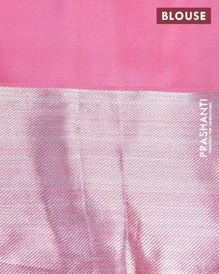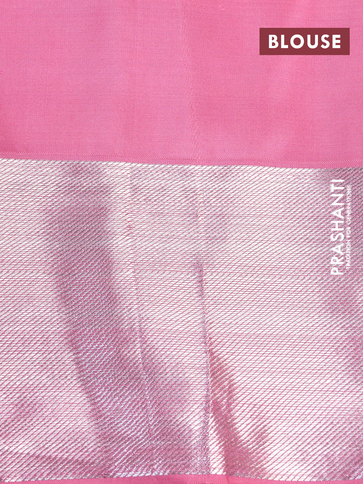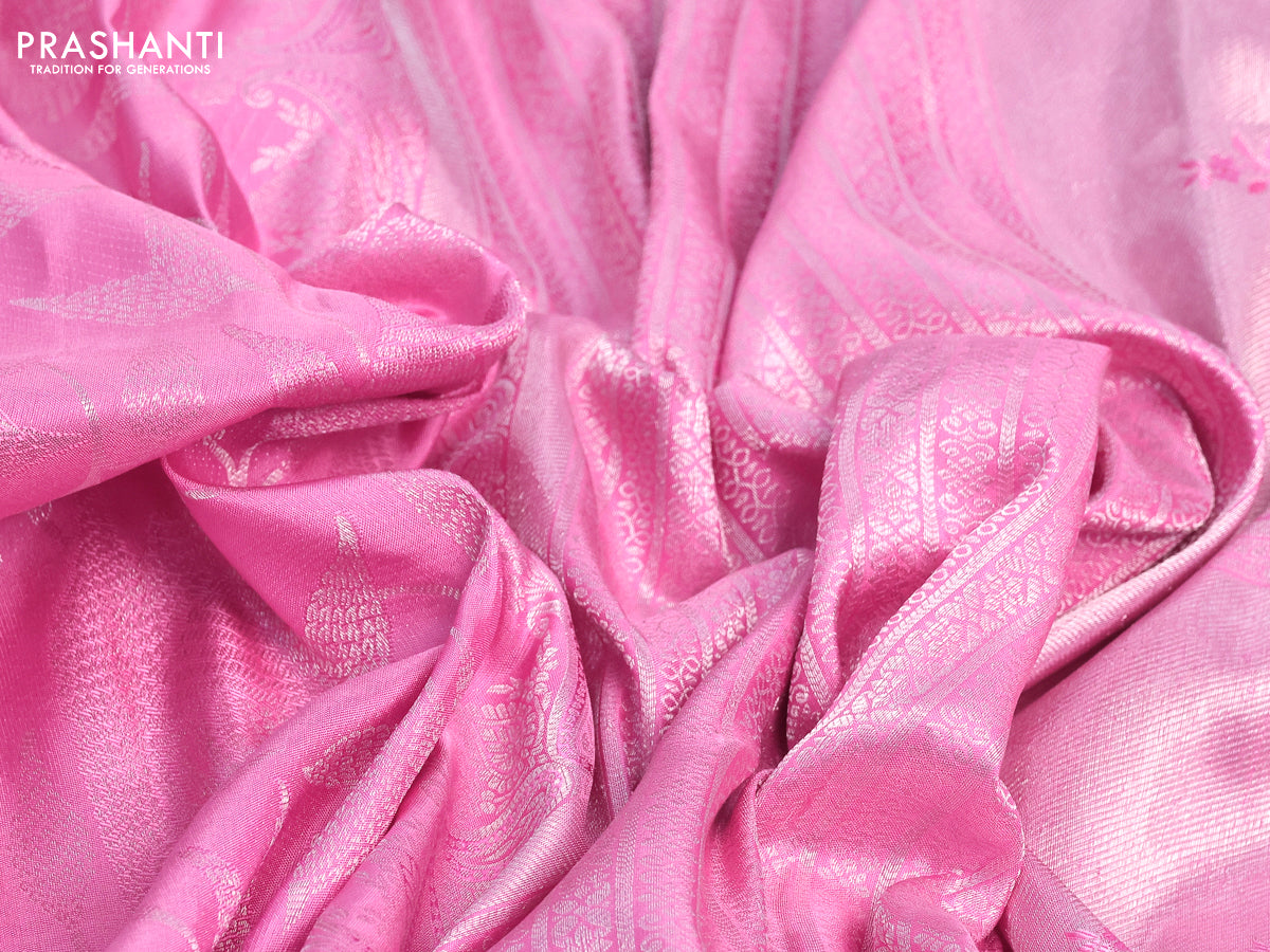 Pure kanchipuram silk saree light pink with allover silver zari woven brocade weaves and silver zari woven border