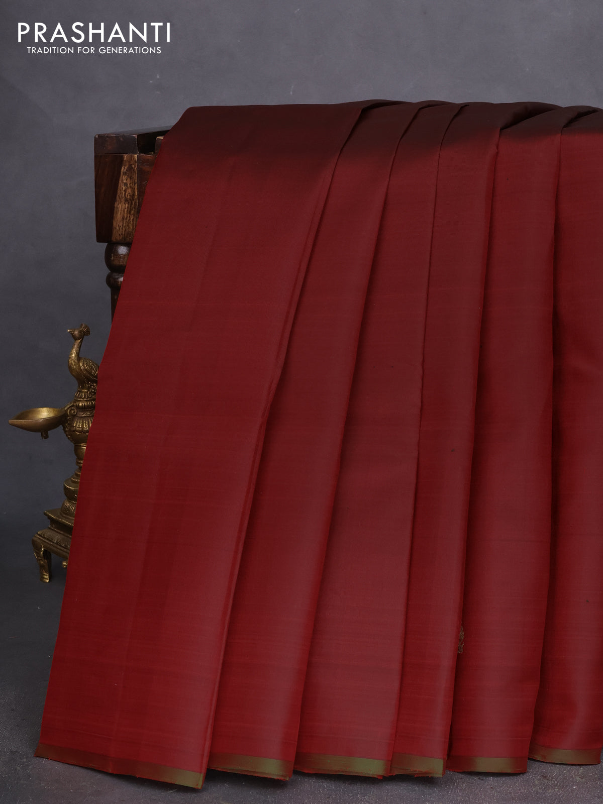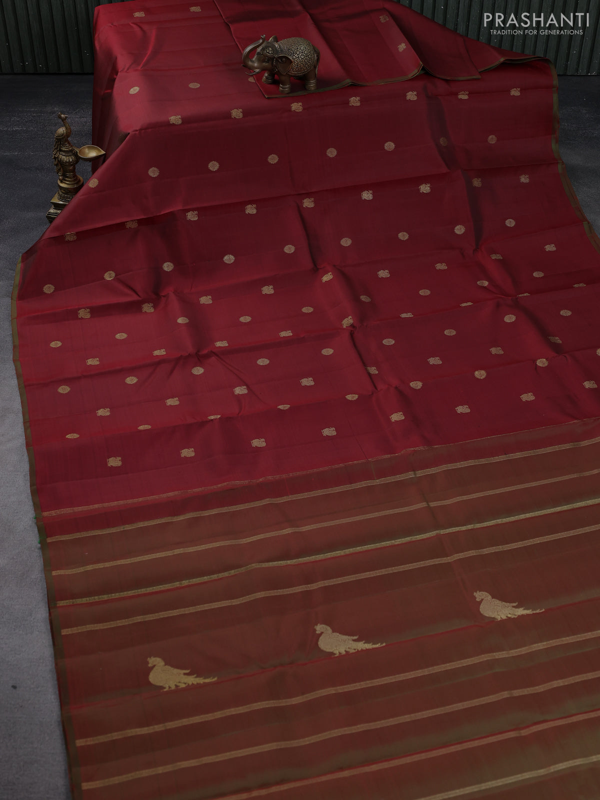 Pure kanchipuram silk saree maroon and dual shade of green with zari woven buttas and piping border