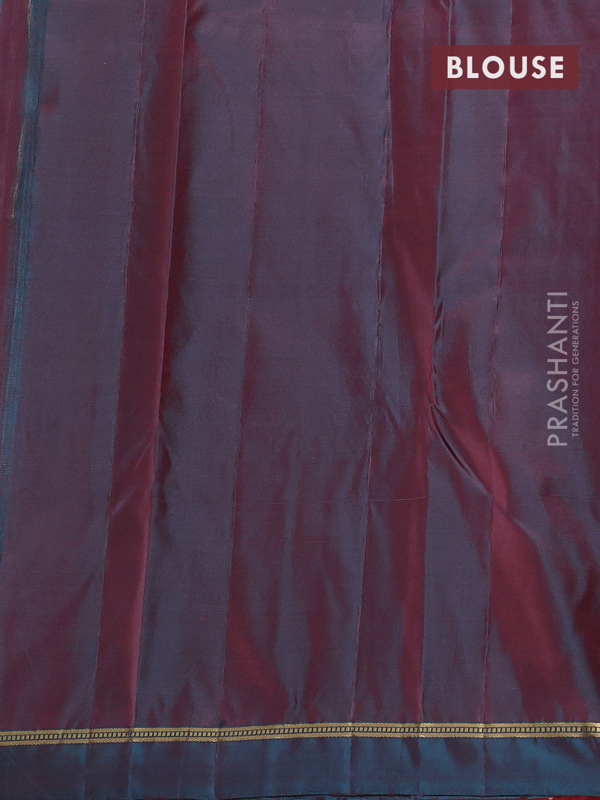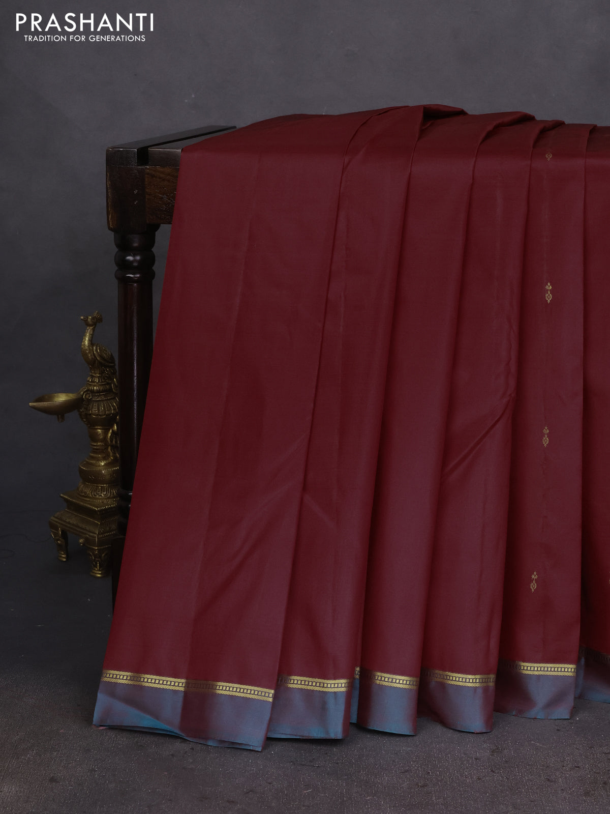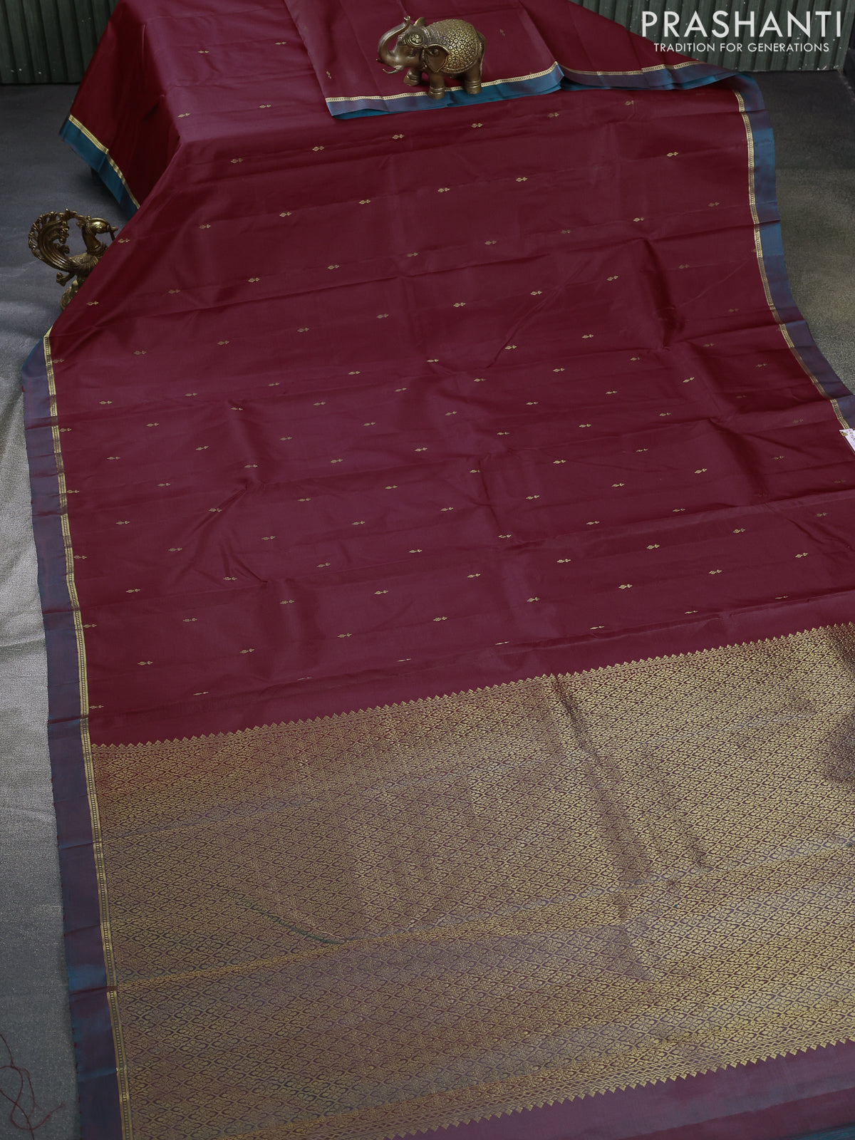 Pure kanchipuram silk saree maroon and dual shade of peacock blue with zari woven buttas and zari woven simple border