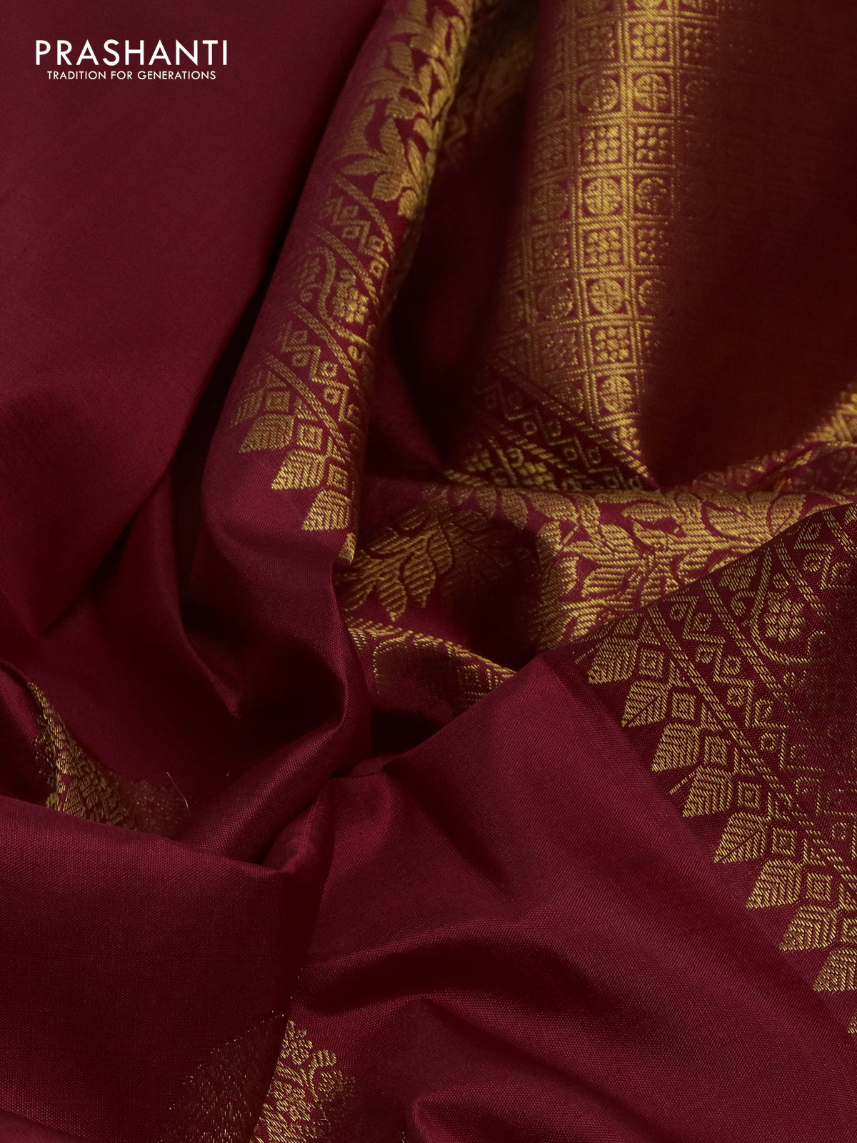Pure kanchipuram silk saree maroon with zari woven buttas and zari woven border