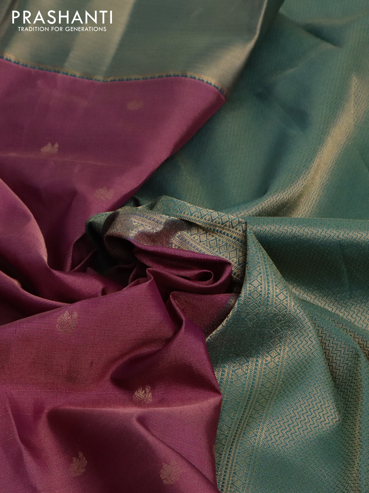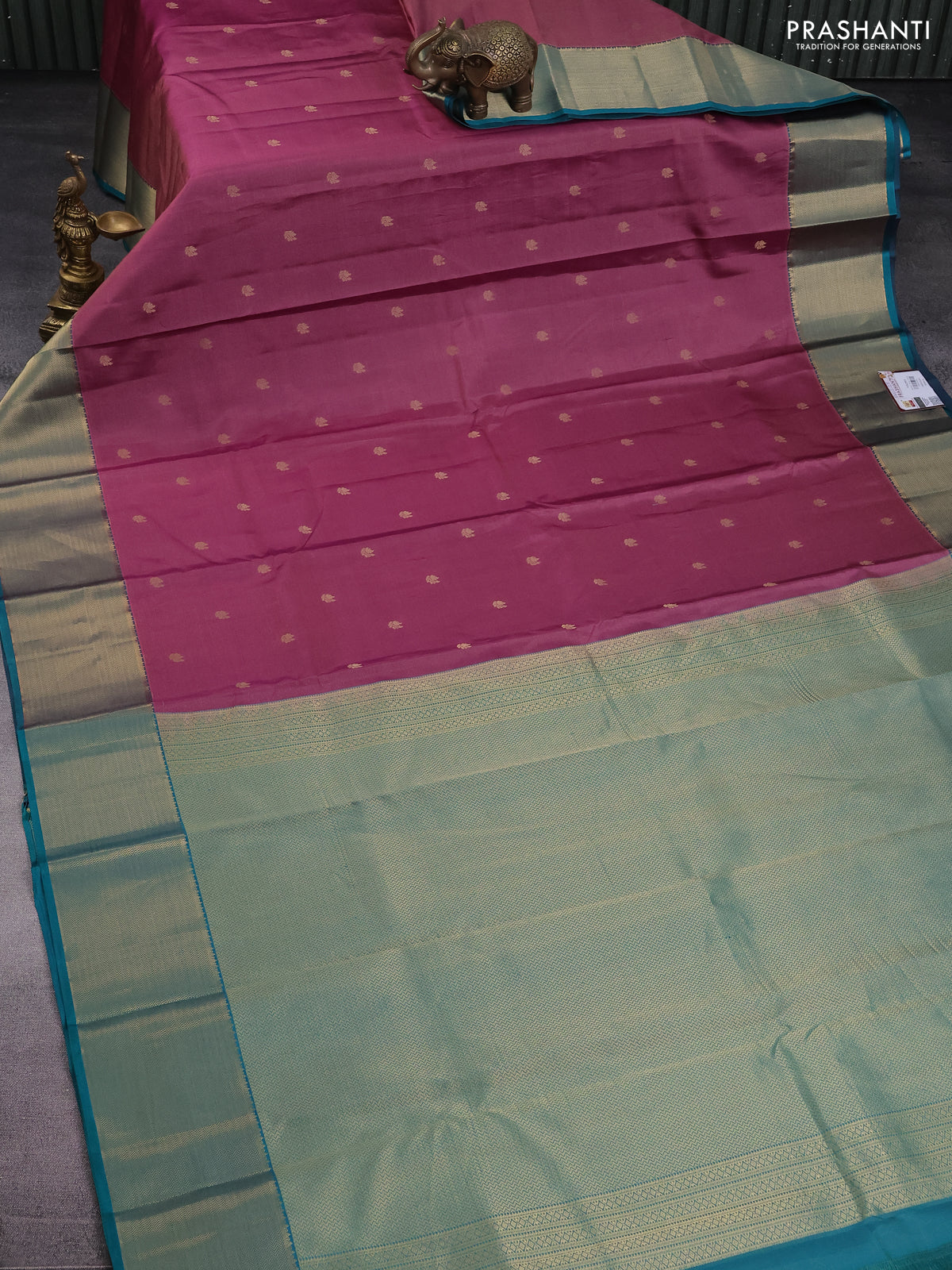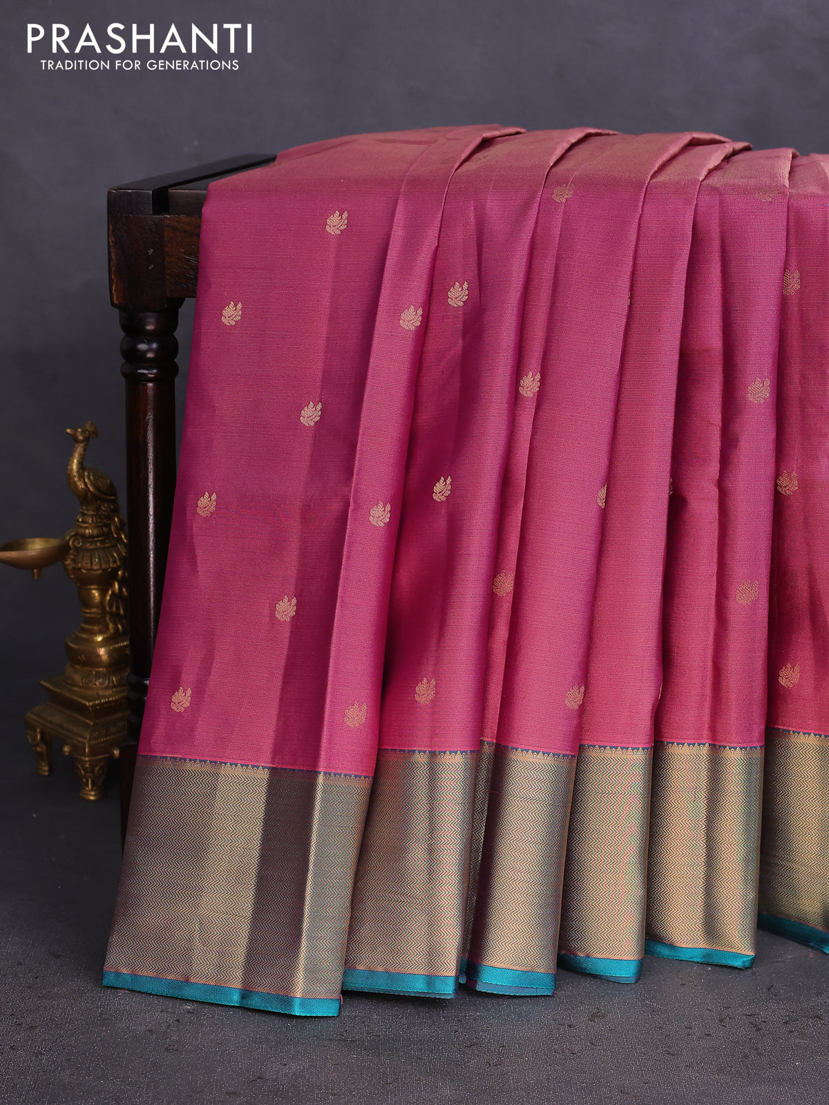 Pure kanchipuram silk saree mauve pink and teal green with allover zari weaves & buttas and zari woven border