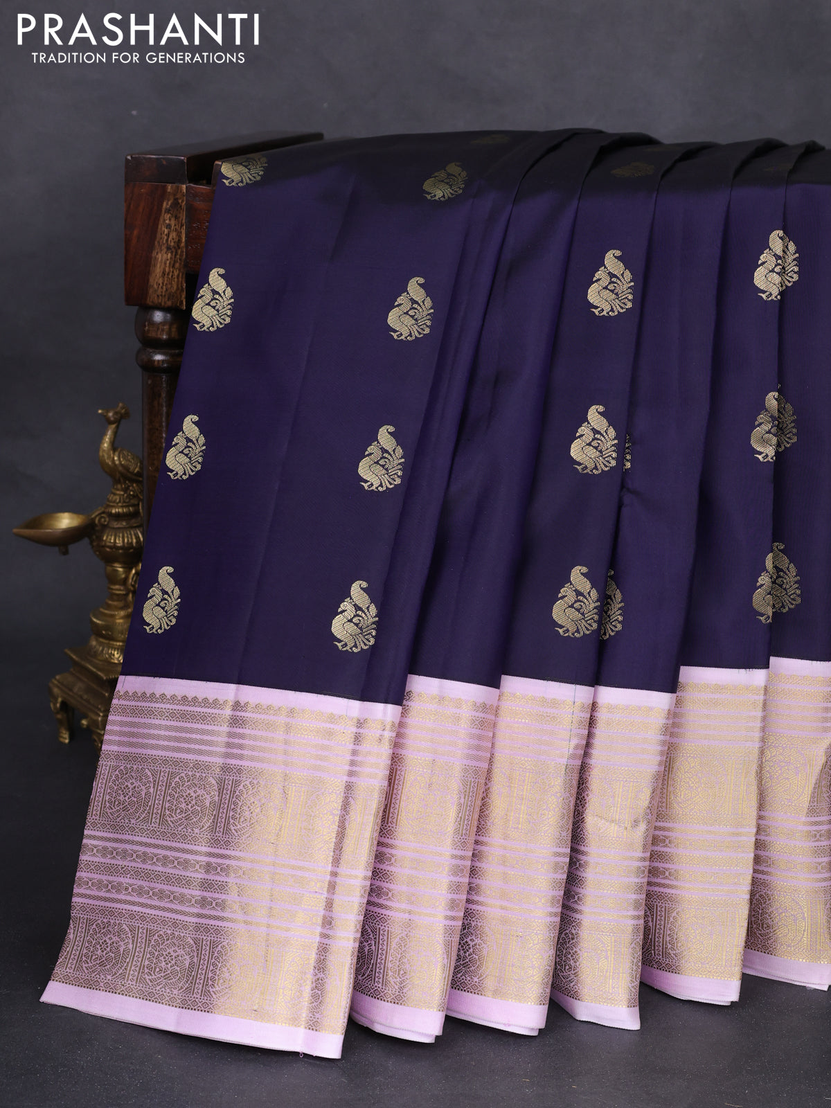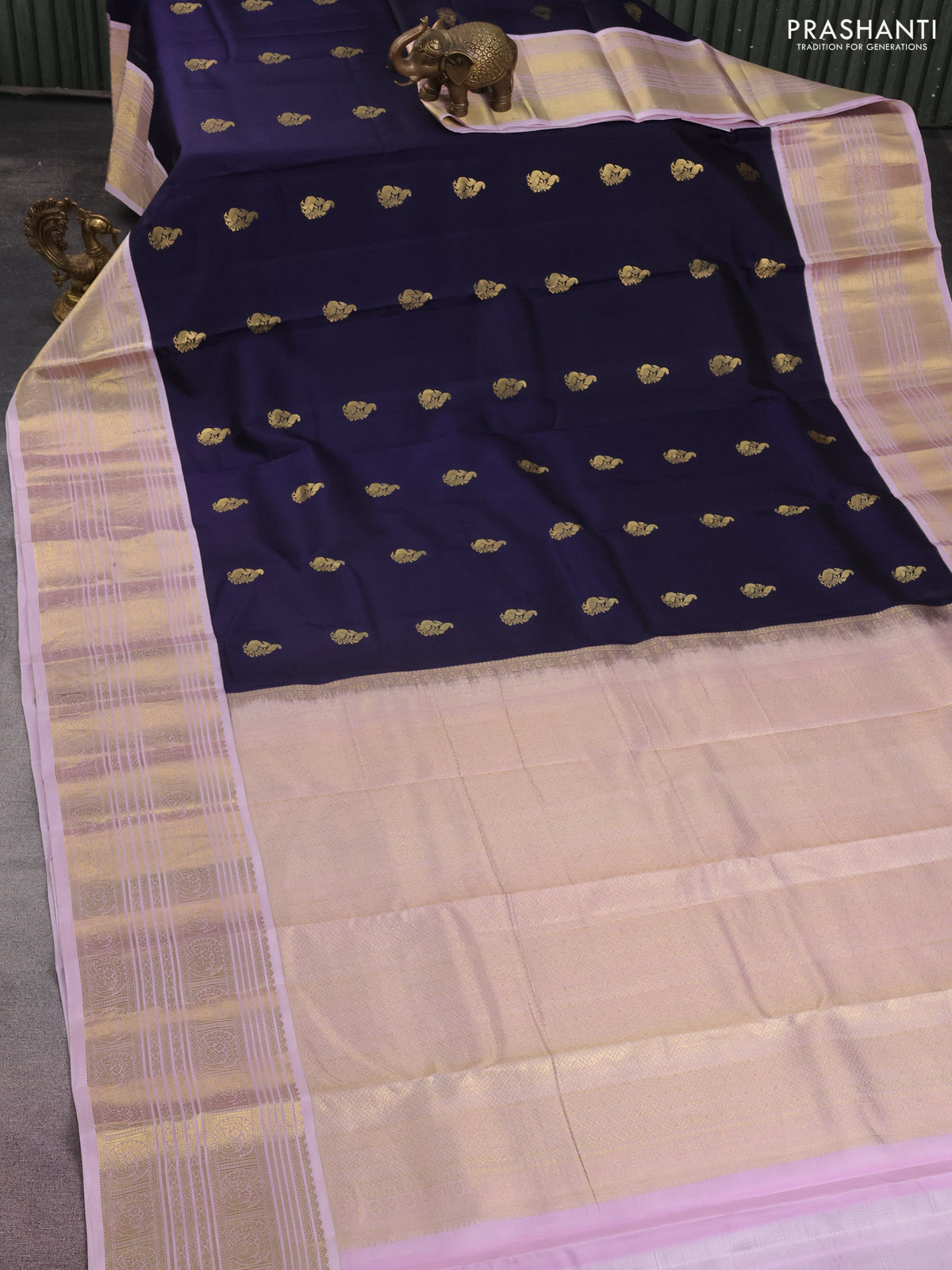 Pure kanchipuram silk saree navy blue and pastel pink with zari woven buttas and zari woven korvai border
