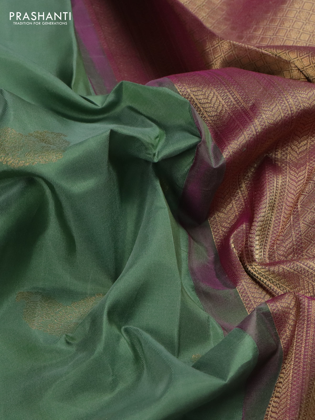 Pure kanchipuram silk saree pastel green and pink with zari woven buttas and rich zari woven border