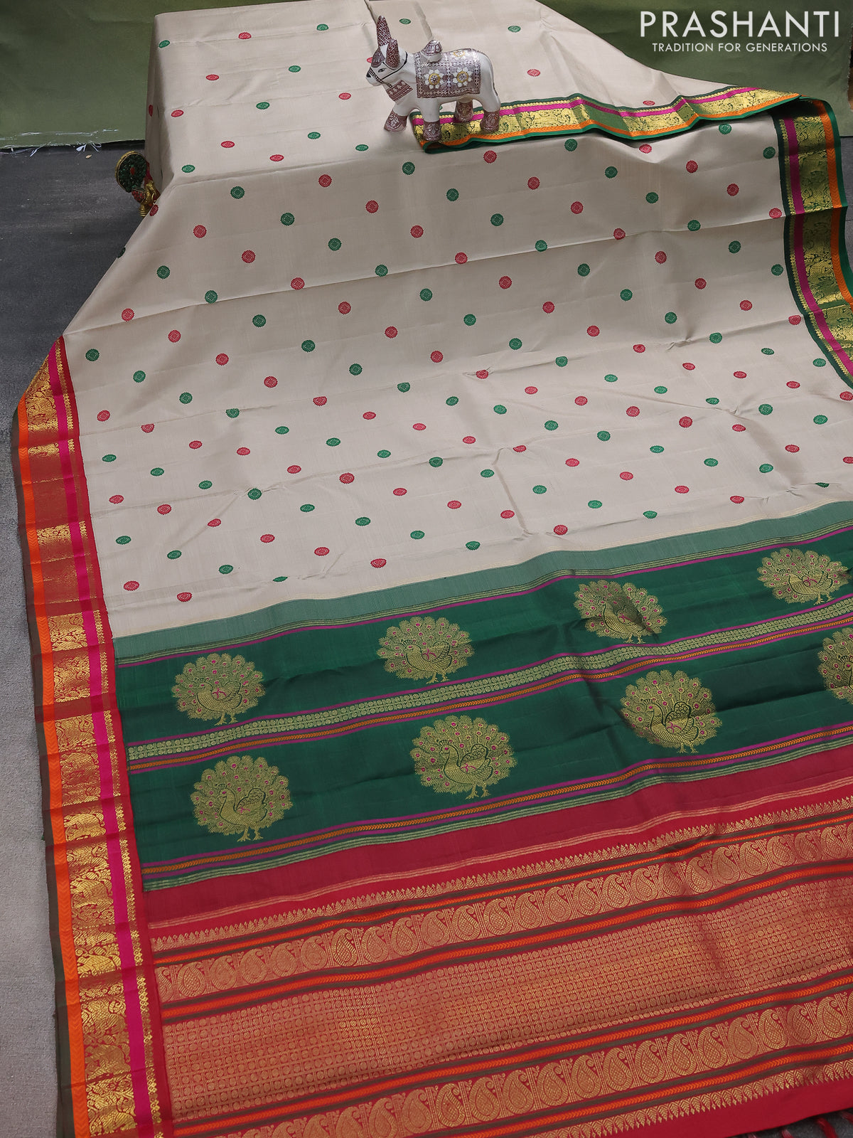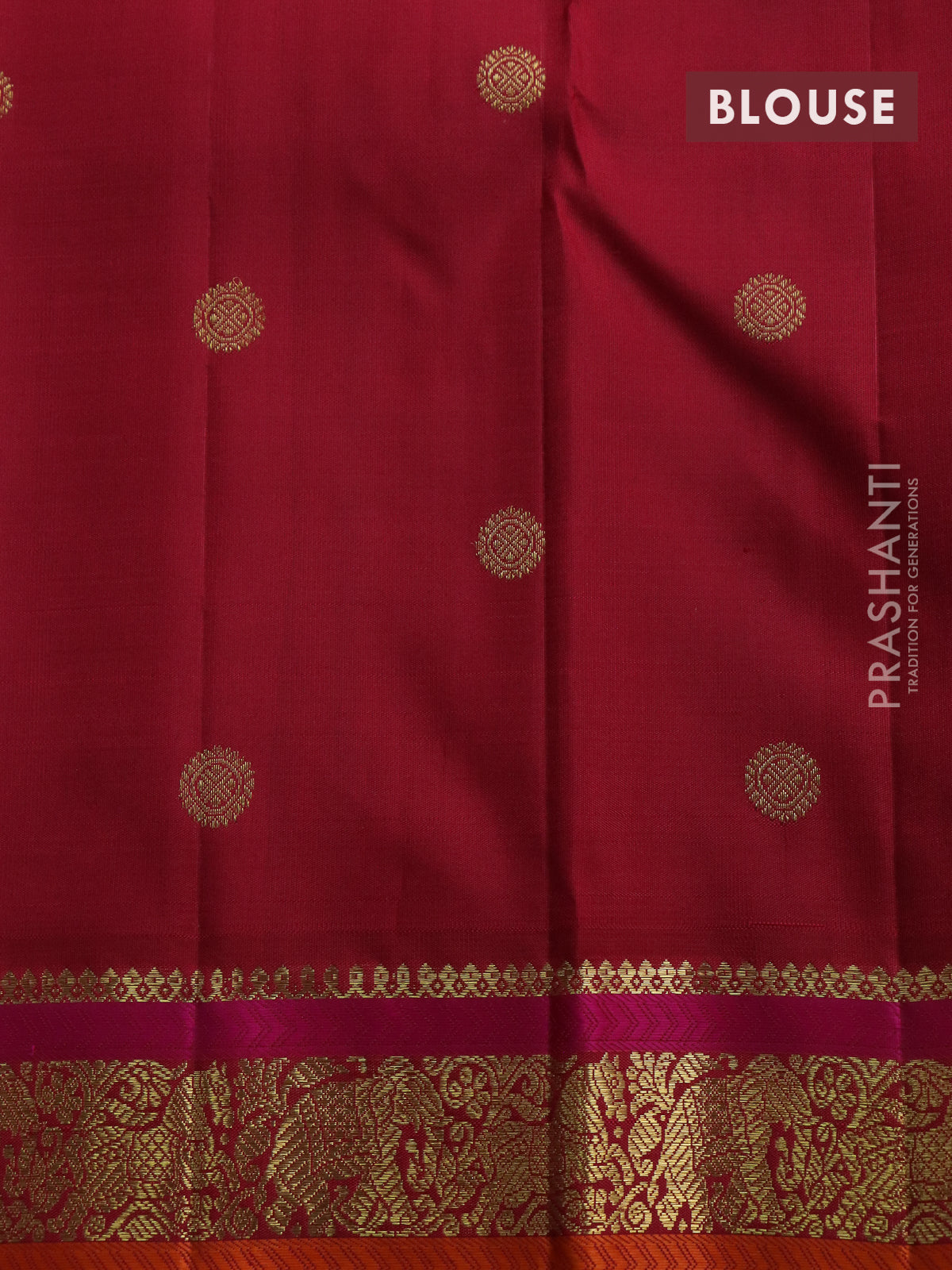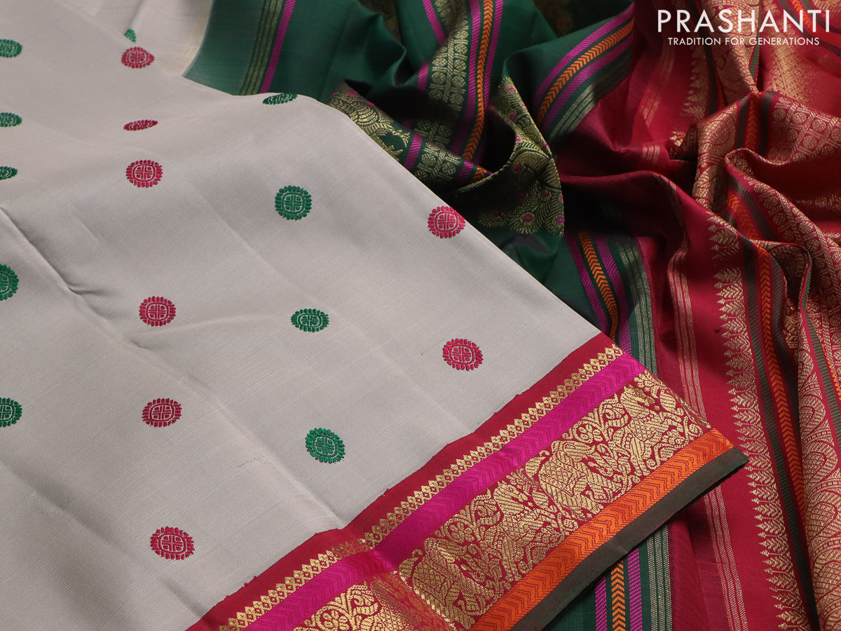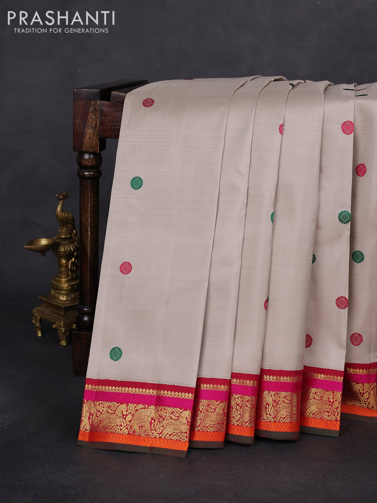 Pure kanchipuram silk saree pastel grey and maroon with thread woven buttas and ganga jamuna korvai border