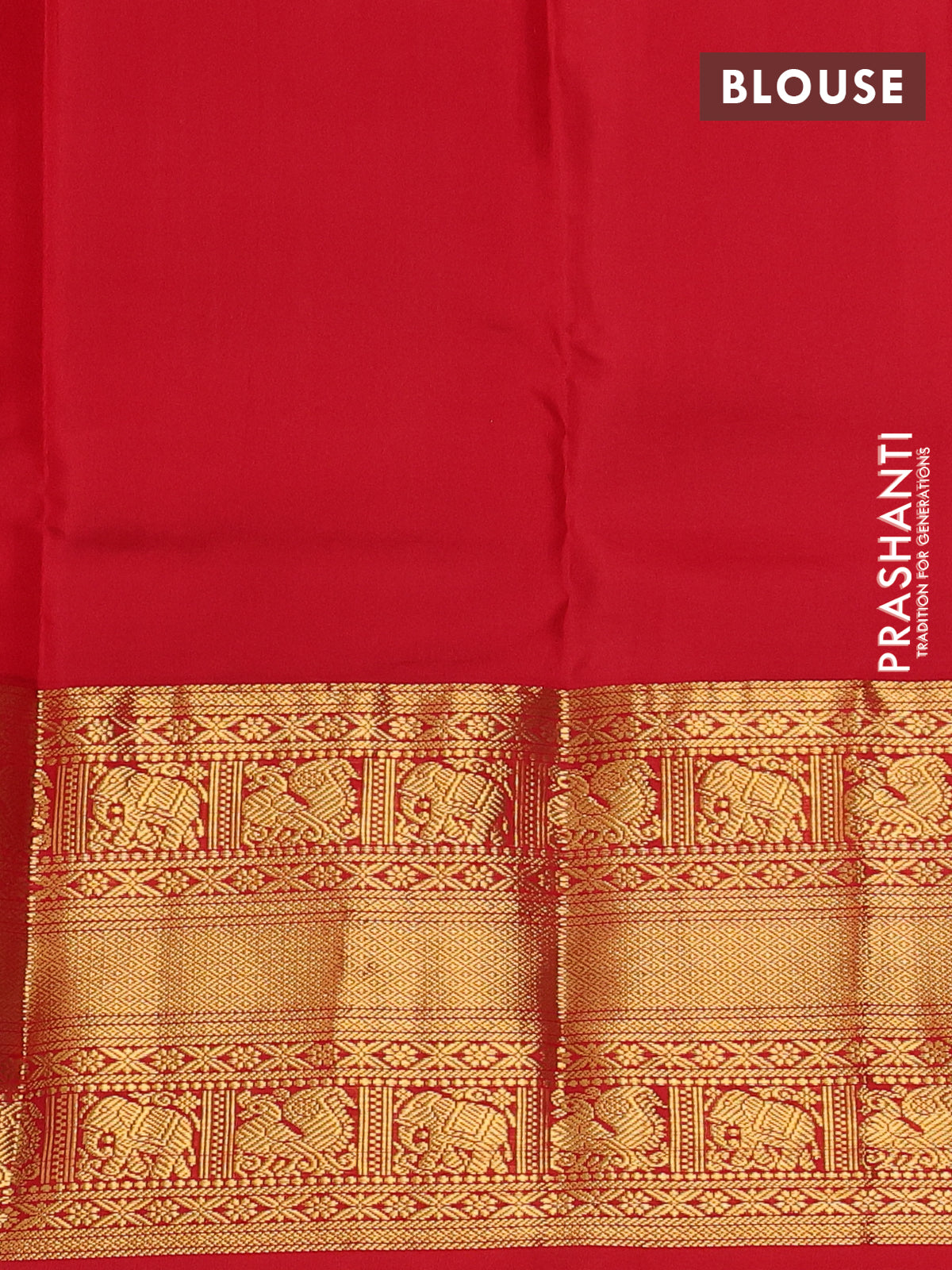Material : Pure Kanchipuram Silk SILK MARK CERTIFIED Blouse : Attached Length of saree : 6.2 mts (5.5 mts saree... Read more