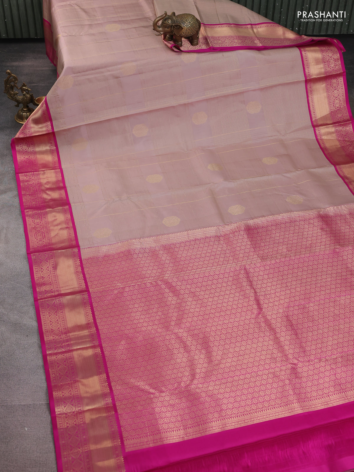 Pure kanchipuram silk saree pastel pink and pink with allover zari checks & buttas and rich zari woven korvai border