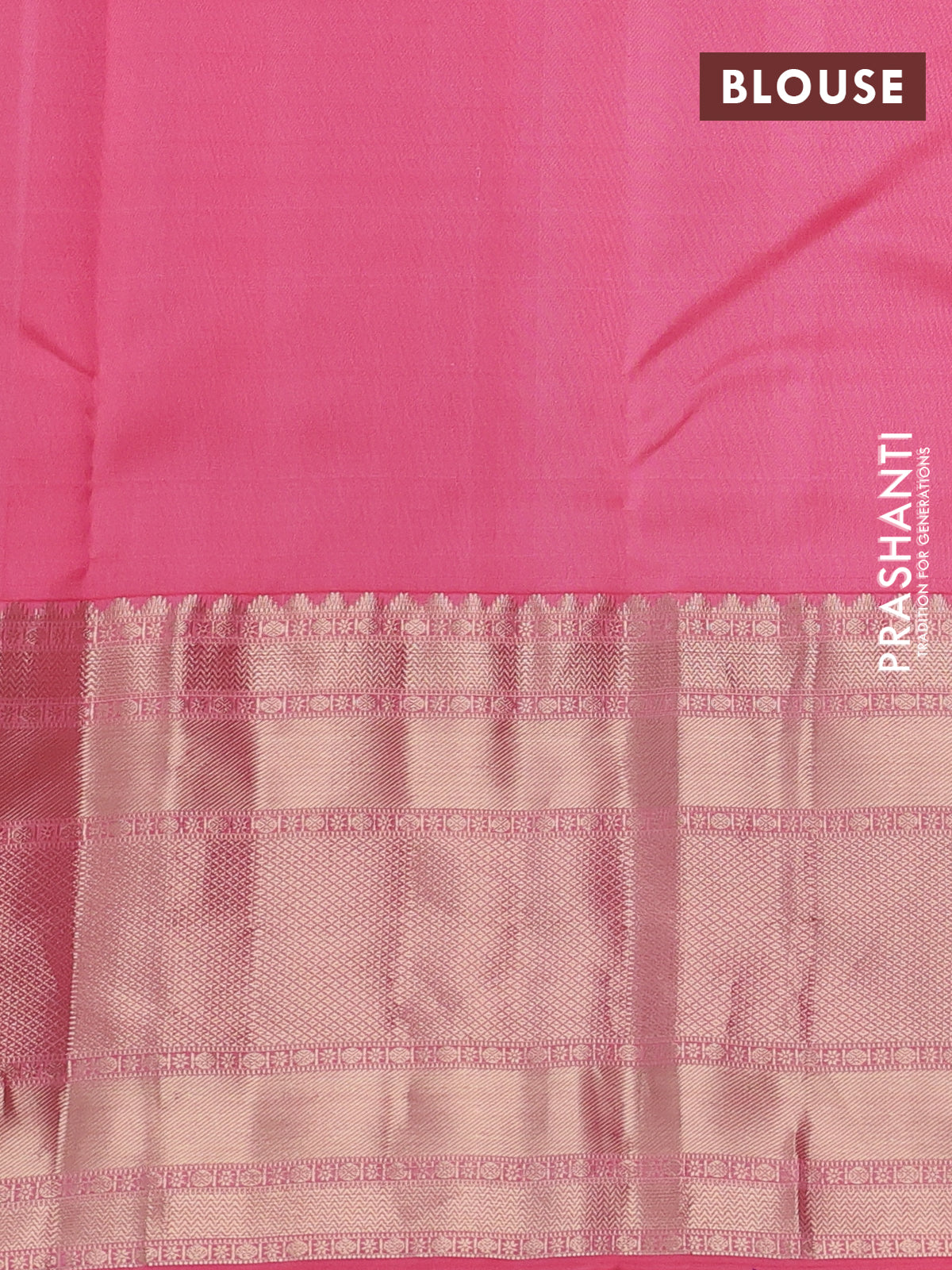 Pure kanchipuram silk saree peach pink with allover zari woven 1000 butta weaves and long rich zari woven border