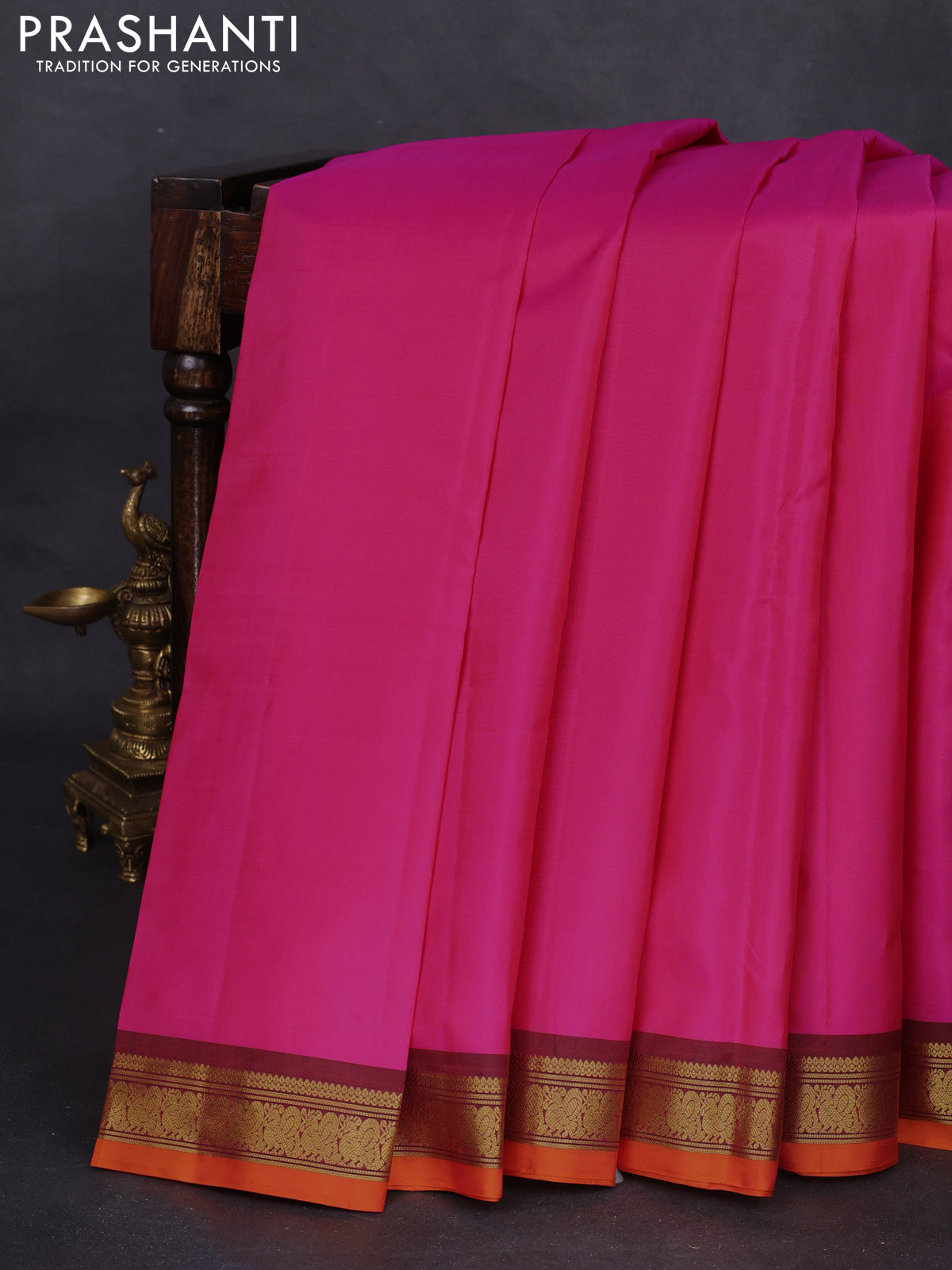 Pure kanchipuram silk saree PINK and orange with plain body and zari woven border
