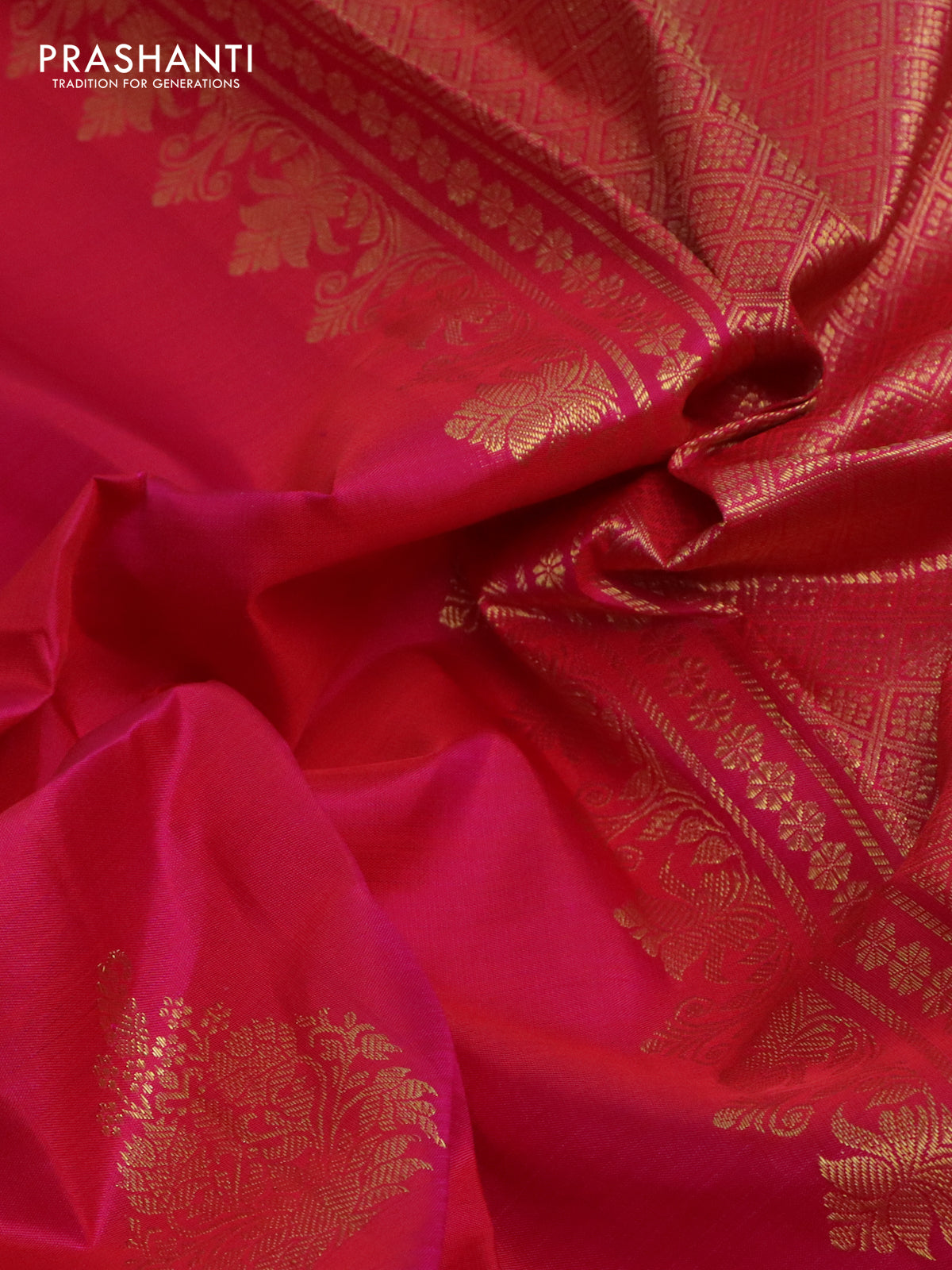 Pure kanchipuram silk saree pink with zari woven buttas and long zari woven border