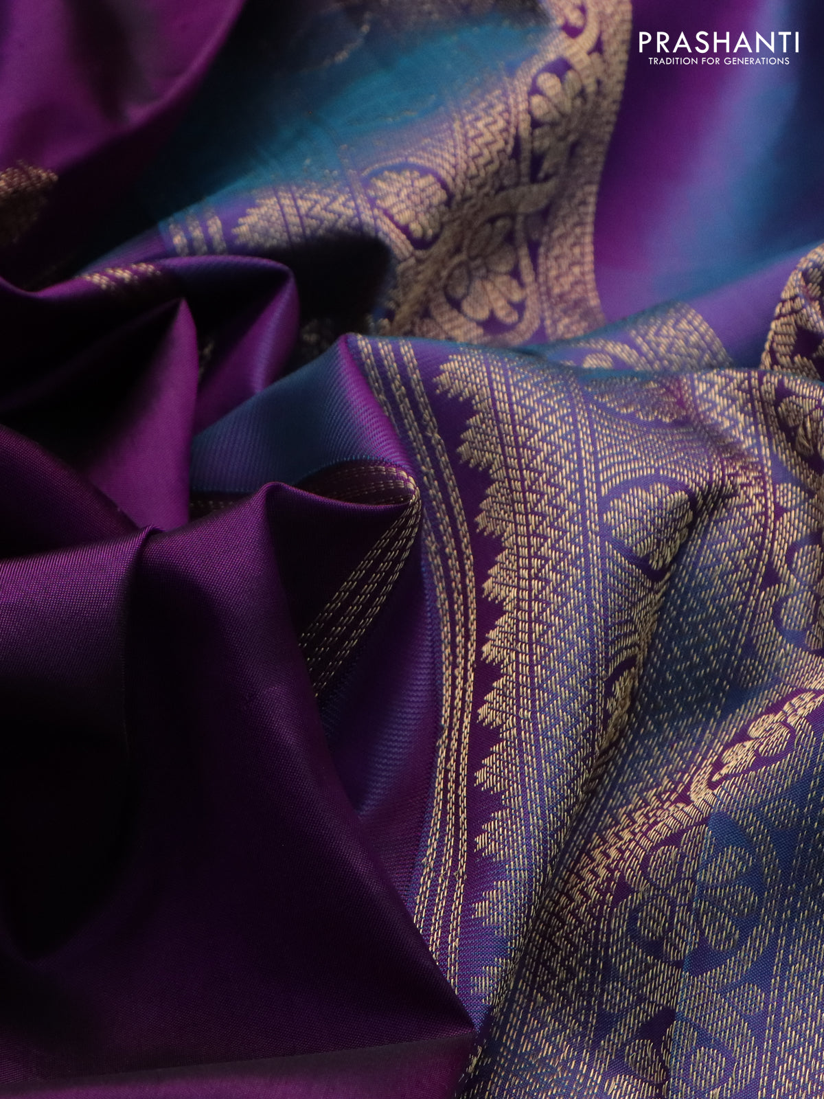 Pure kanchipuram silk saree purple and dual shade of blue with zari woven buttas and long rettapet zari woven border