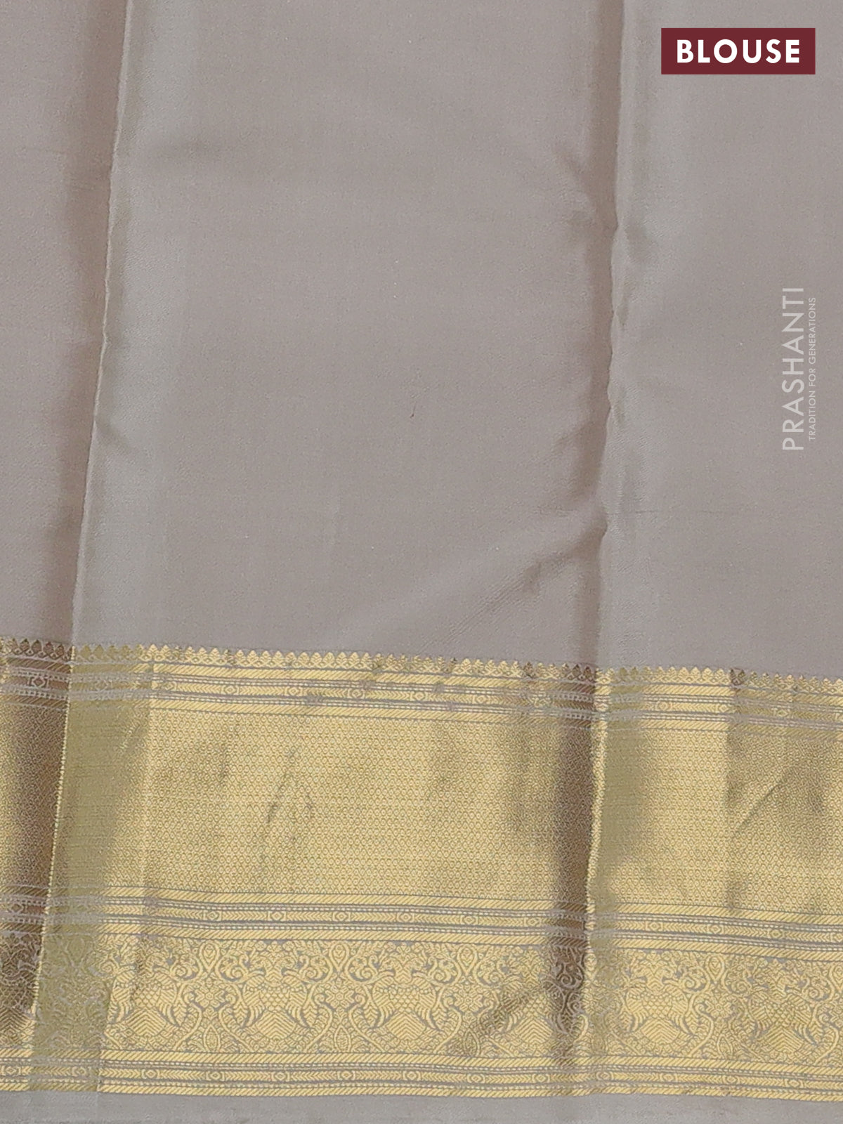 Pure kanchipuram silk saree purple and grey with allover zari checks & buttas and annam zari woven korvai border