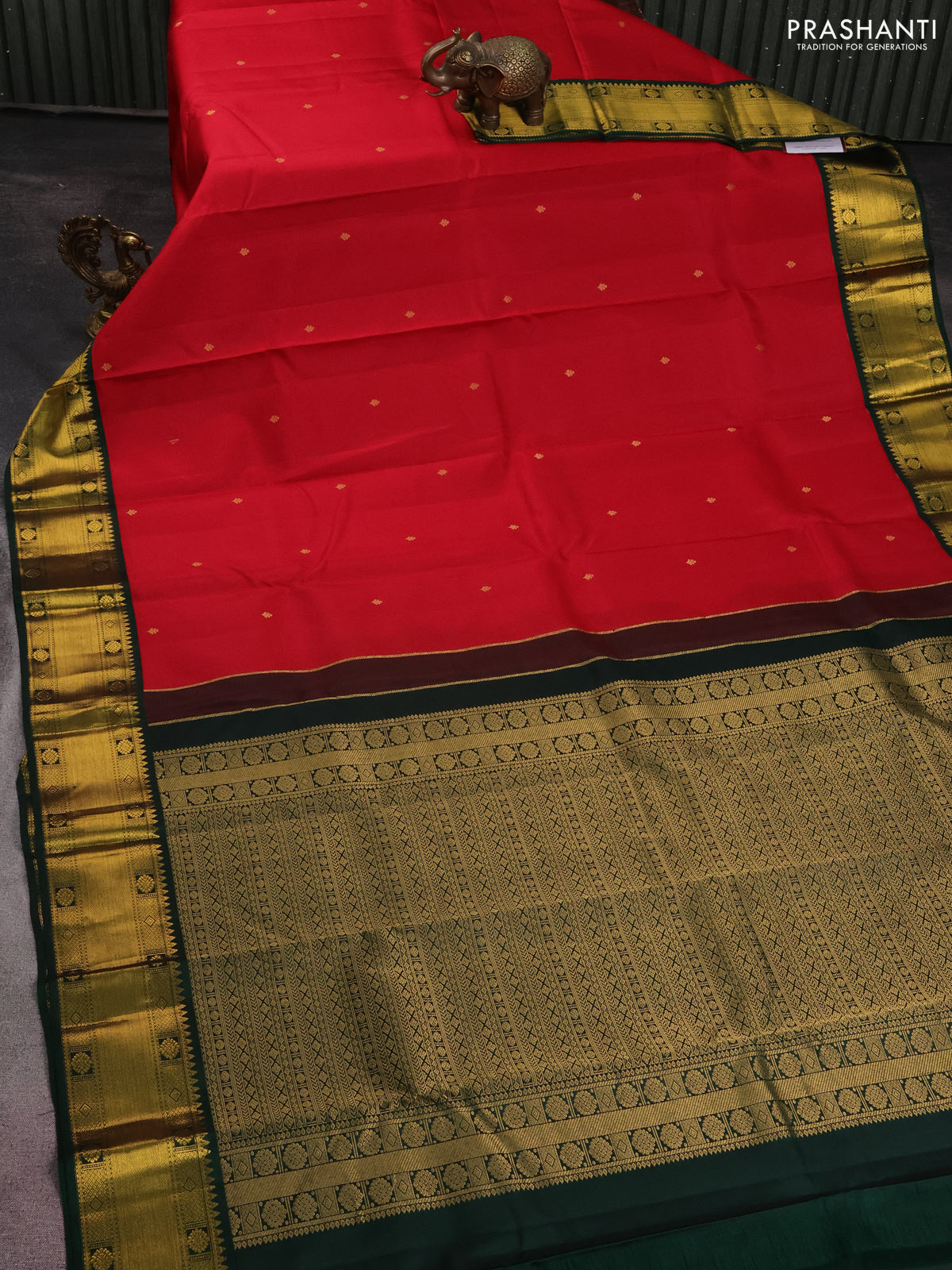 Pure kanchipuram silk saree red and green with zari woven buttas and zari woven korvai border