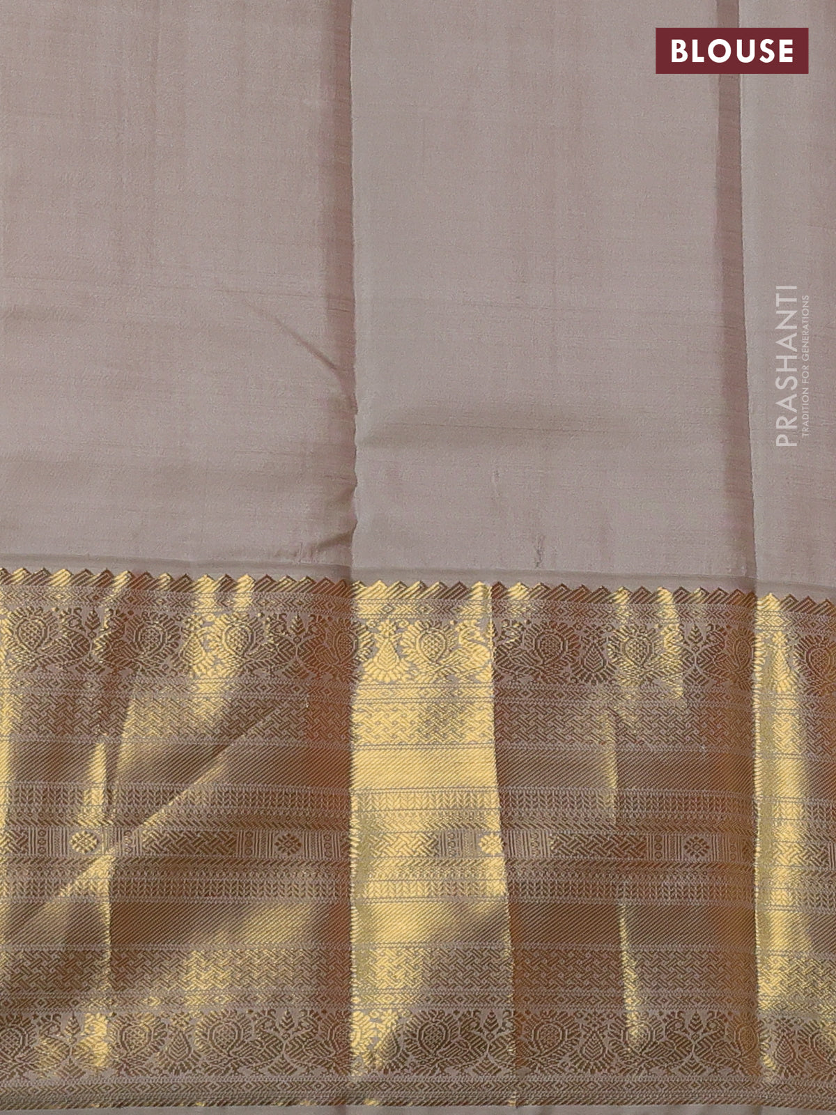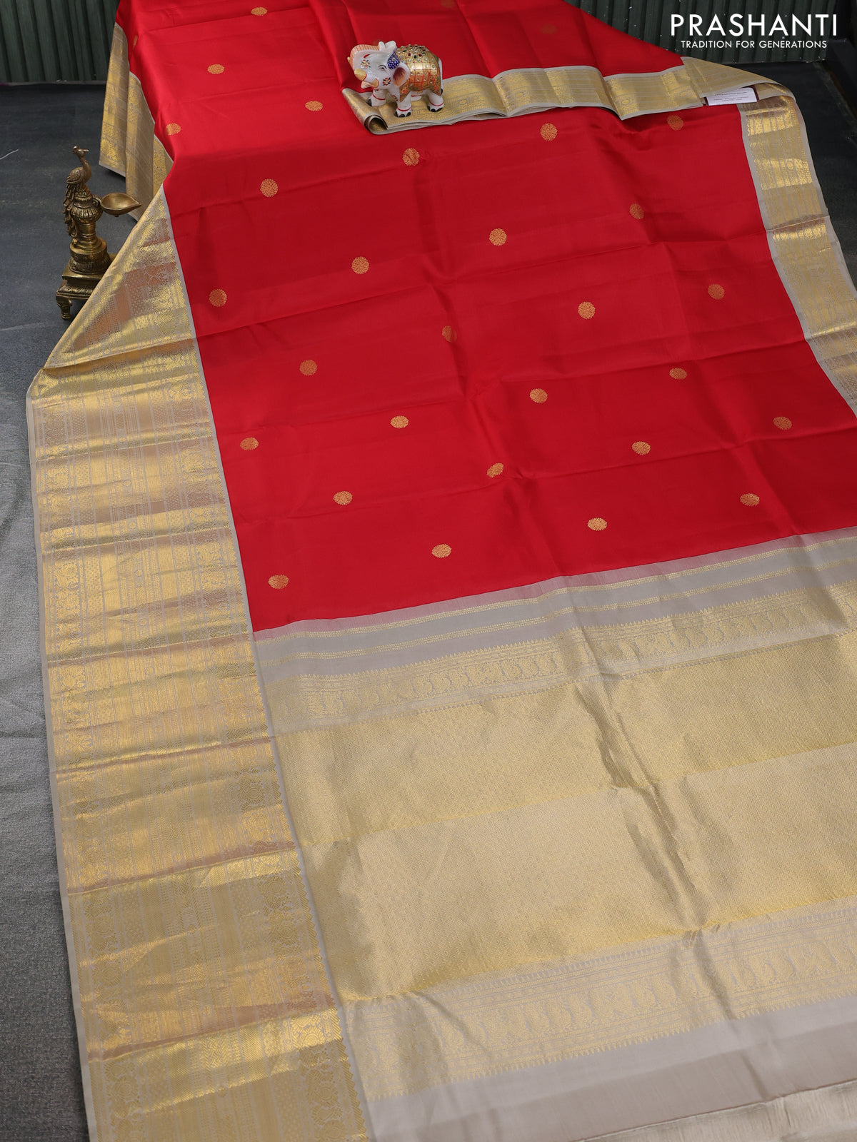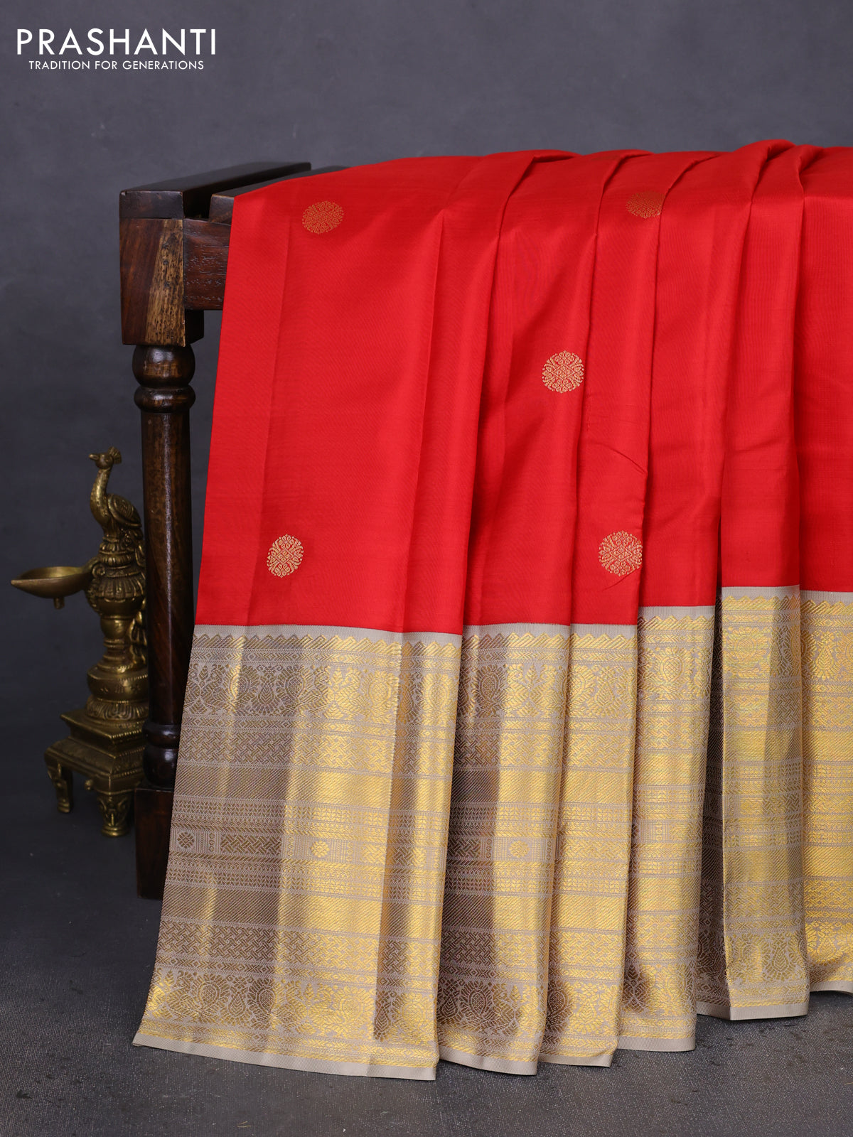 Pure kanchipuram silk saree red and grey with zari woven buttas and long zari woven korvai border
