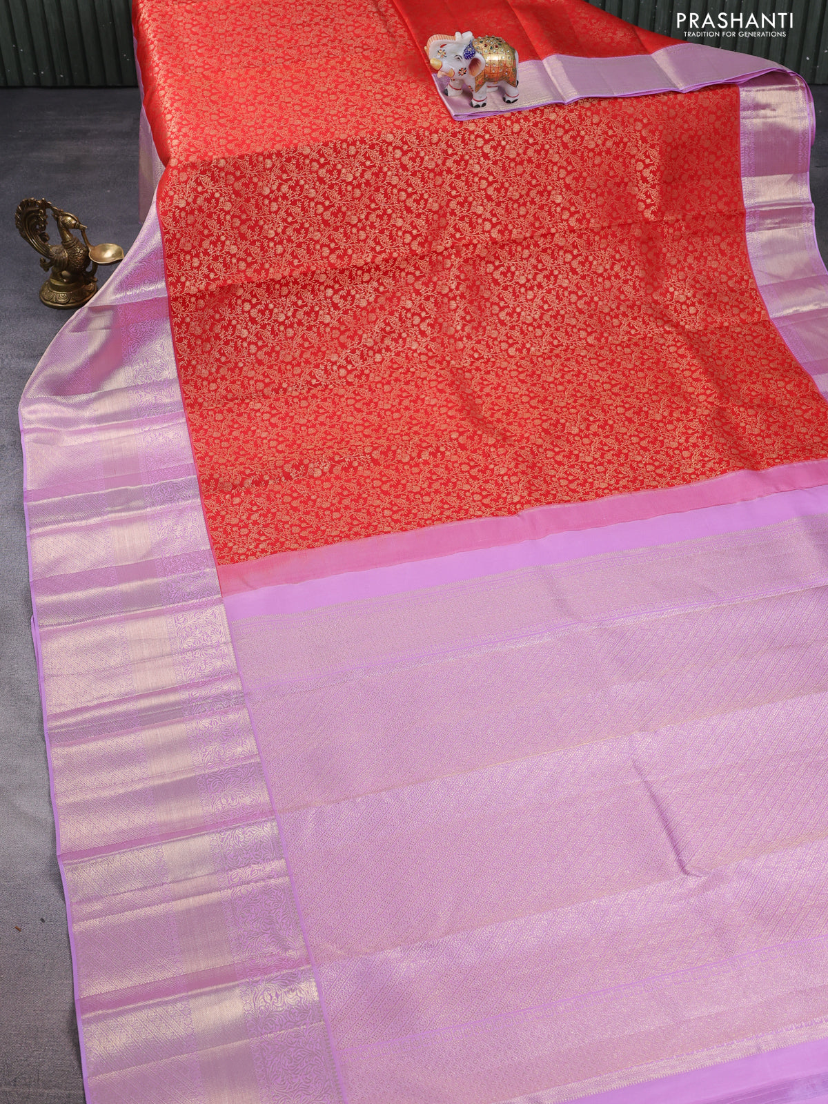 Pure kanchipuram silk saree red and lavender with allover zari woven brocade weaves and zari woven border