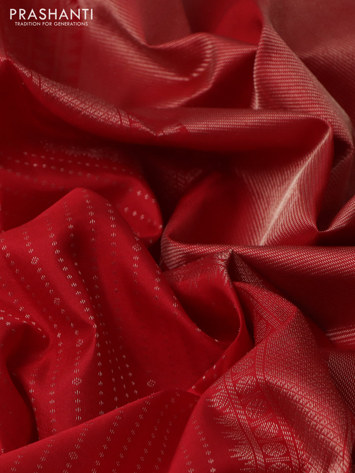 Pure kanchipuram silk saree red with allover zari woven 1000 butta weaves and long rich zari woven border