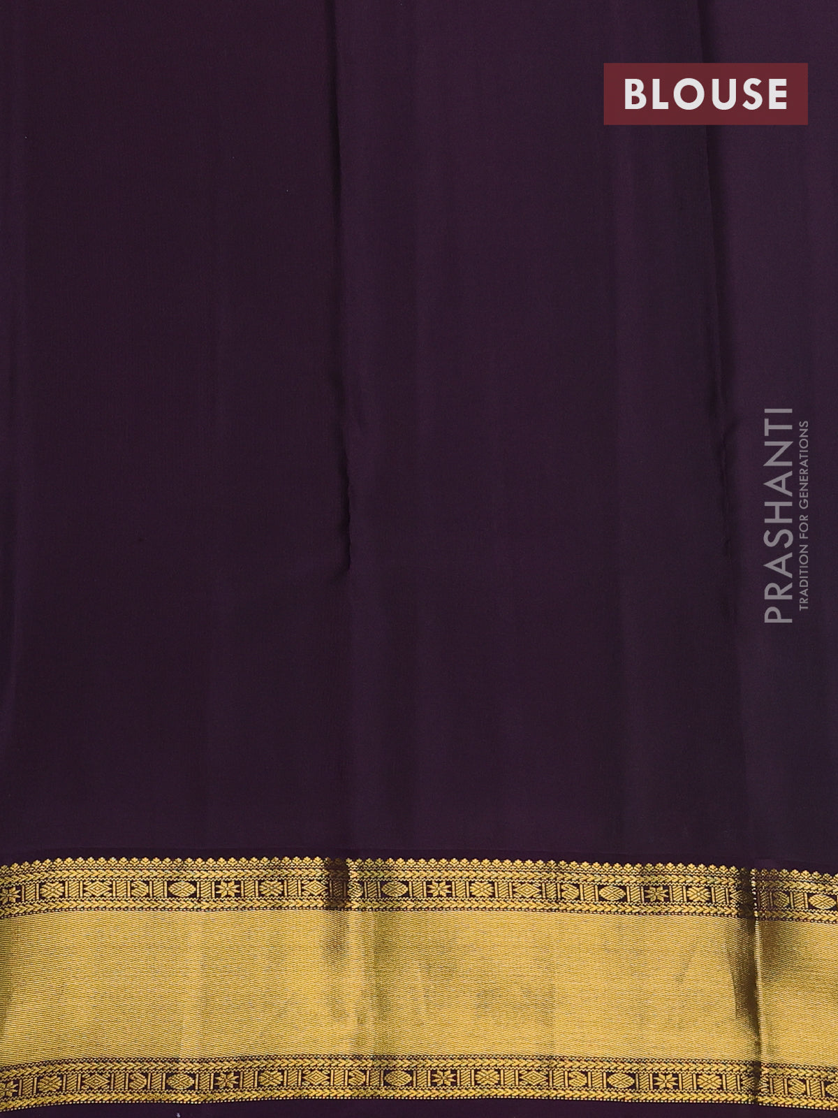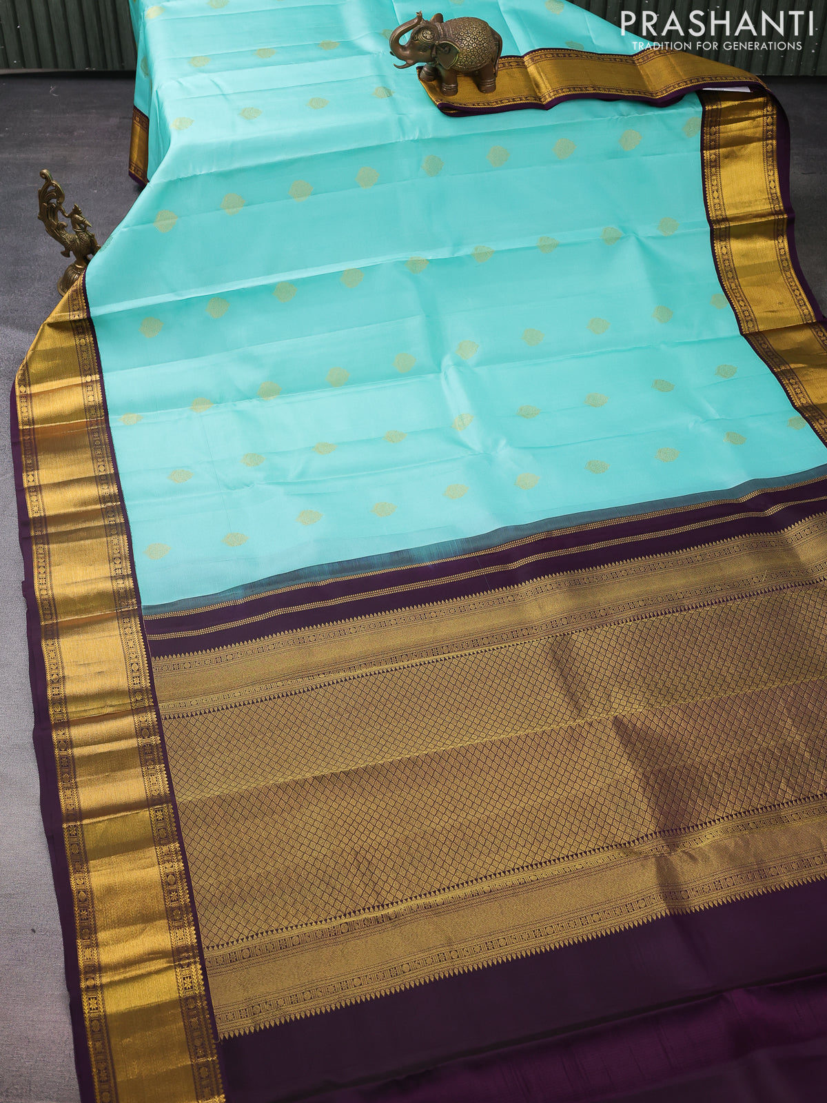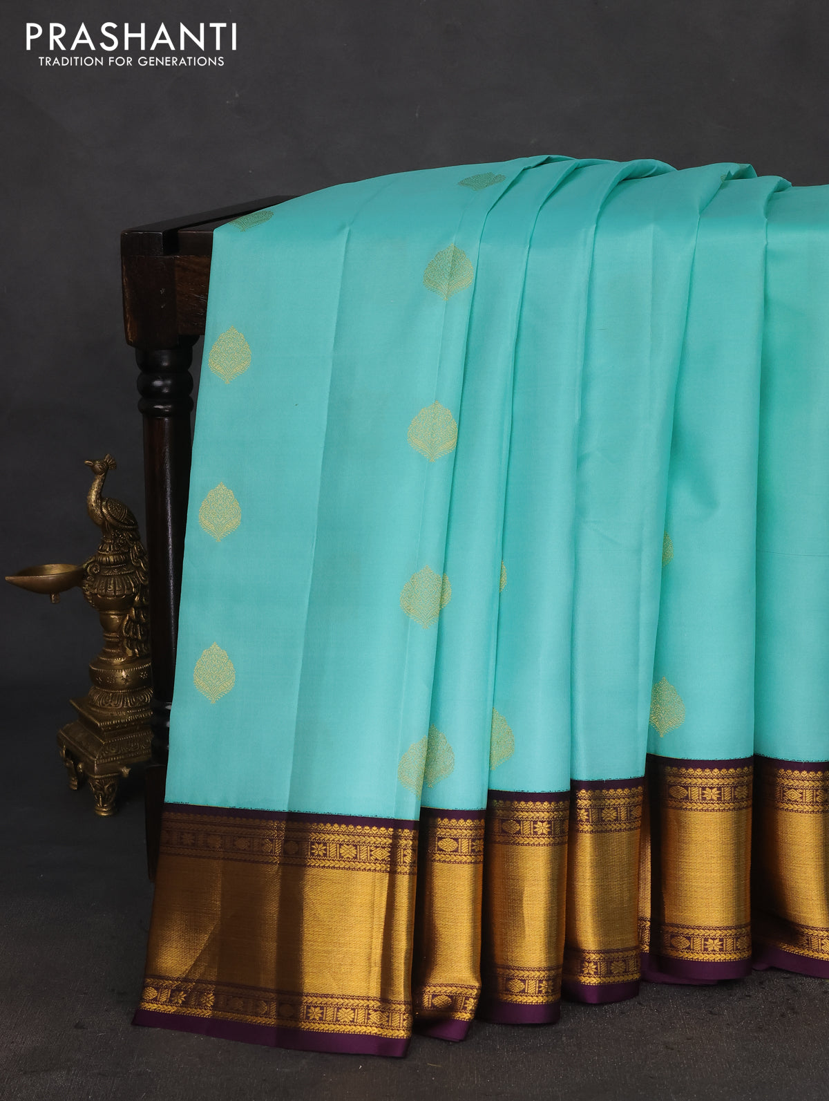 Pure kanchipuram silk saree teal blue and deep violet with zari woven buttas and zari woven korvai border
