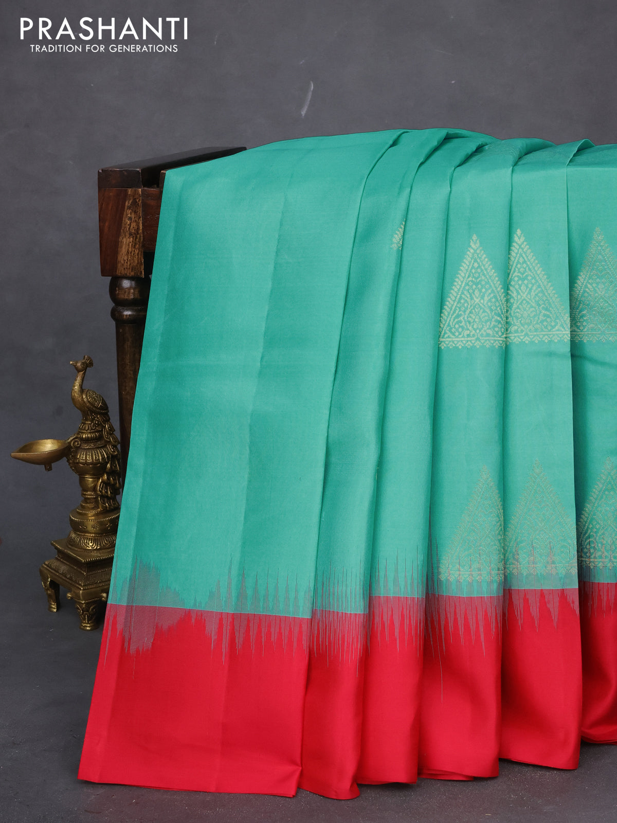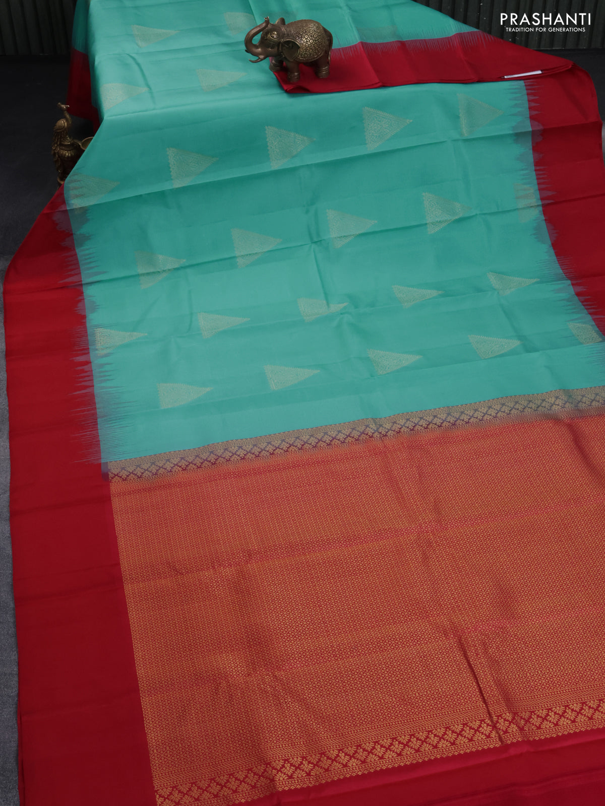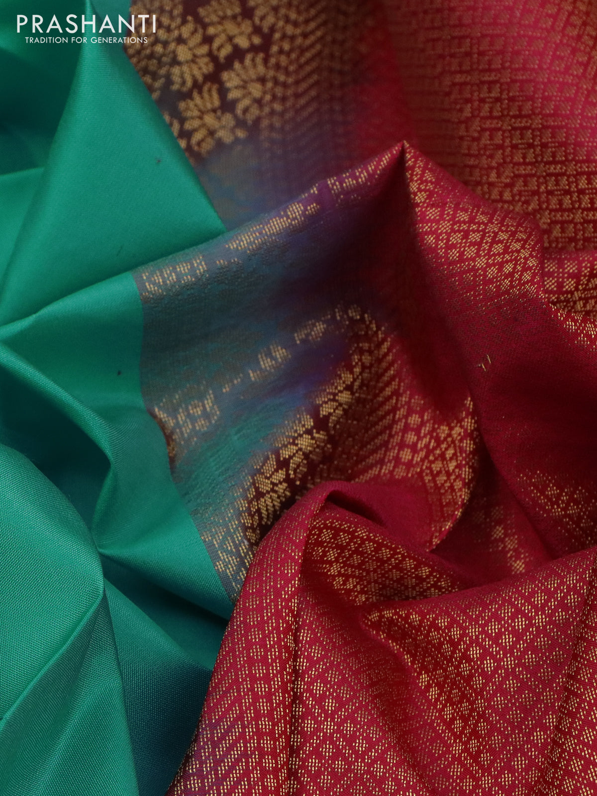 Pure kanchipuram silk saree teal blue and pink with zari woven buttas and simple border