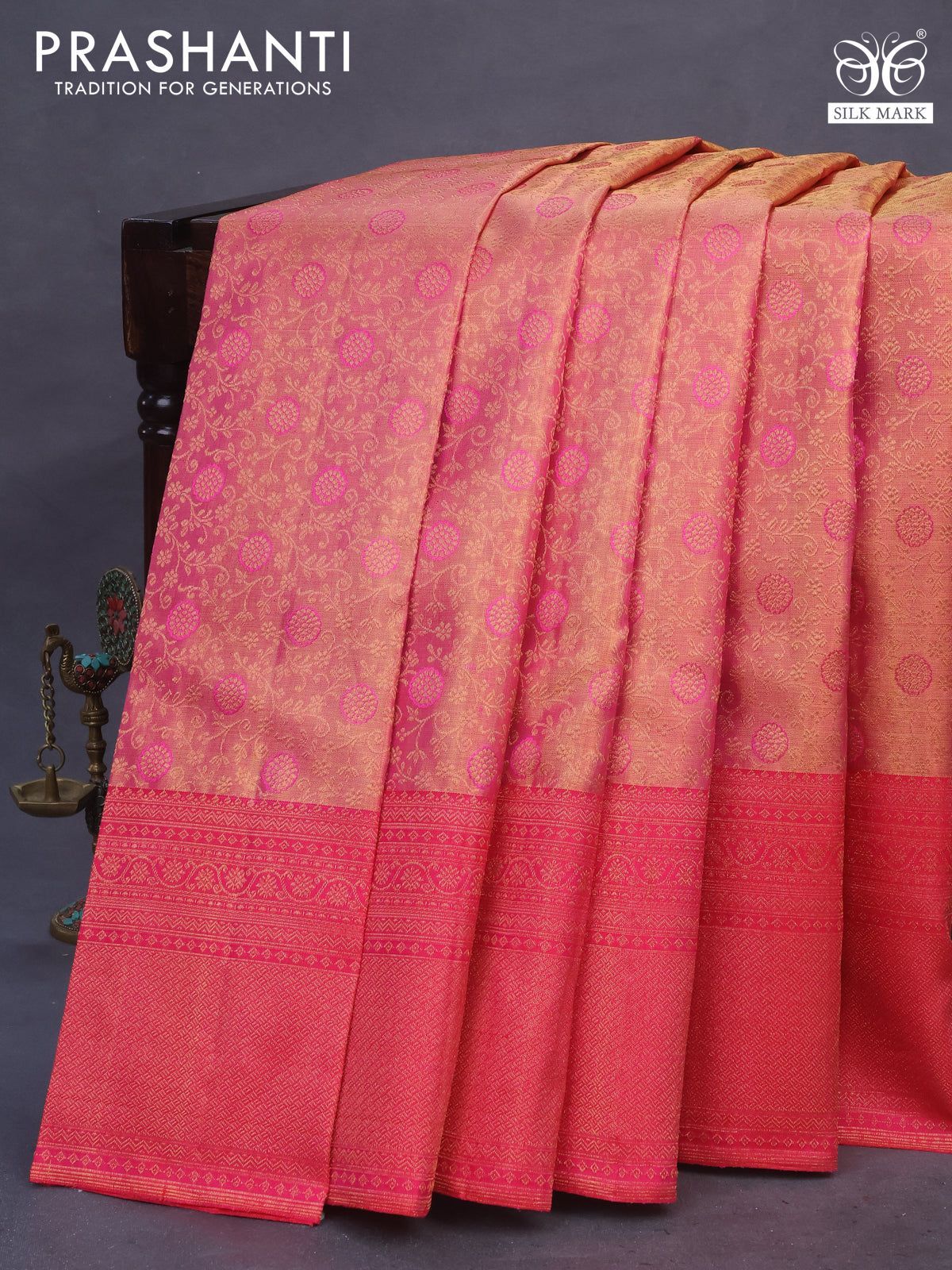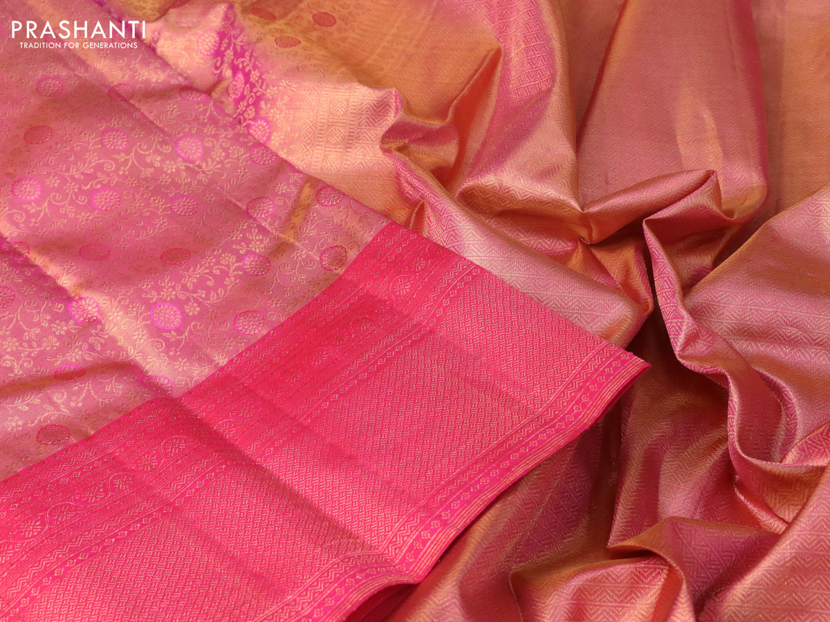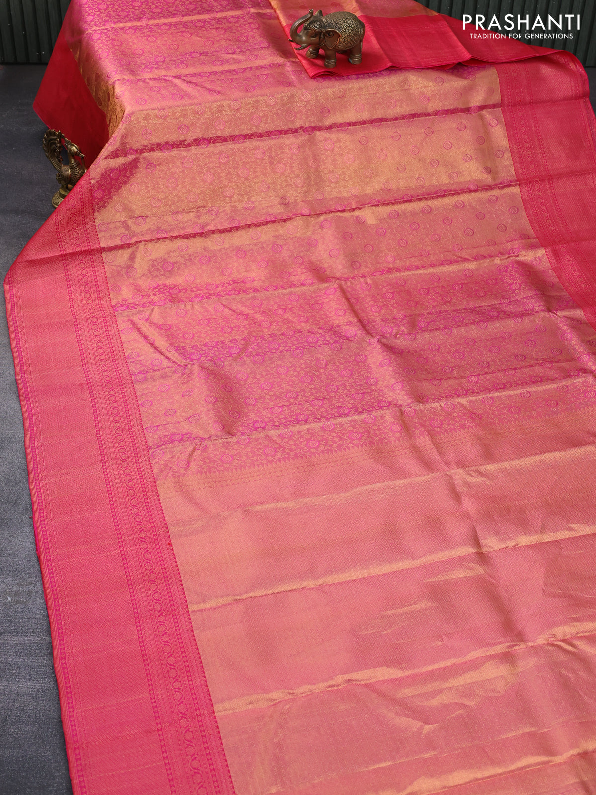 Pure kanchipuram tissue silk saree dual shade of pink with allover zari woven brocade weaves and zari woven border
