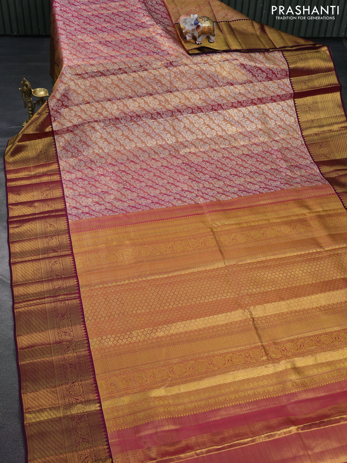 Pure kanchipuram tissue silk saree dual shade of teal blue and purple with allover zari woven brocade weaves and long zari woven border