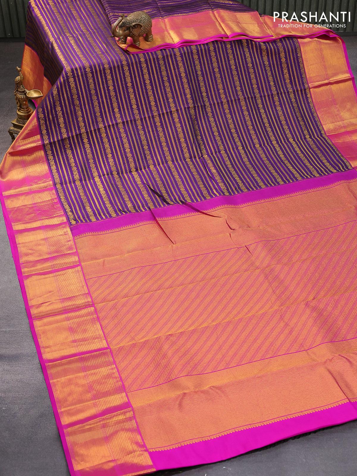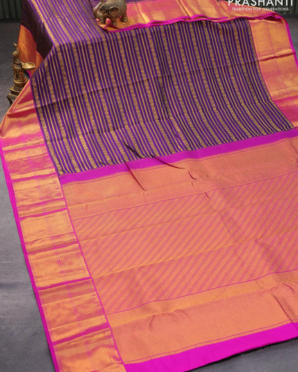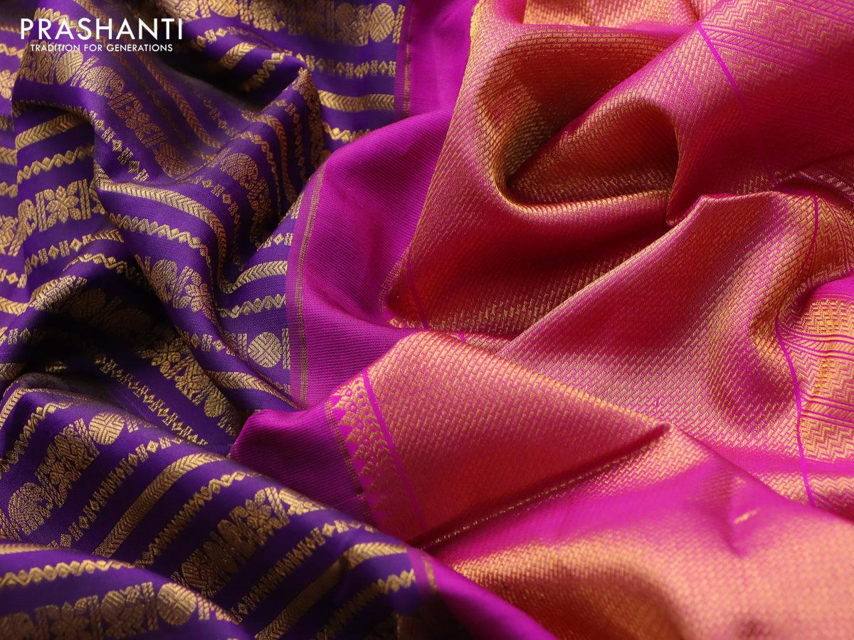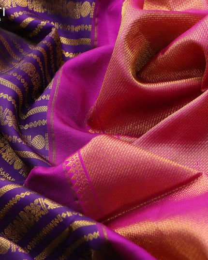 Pure kanjivaram silk saree deep purple and pink with allover zari weaves and zari woven border