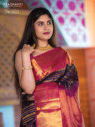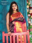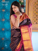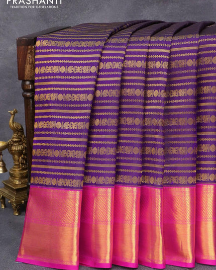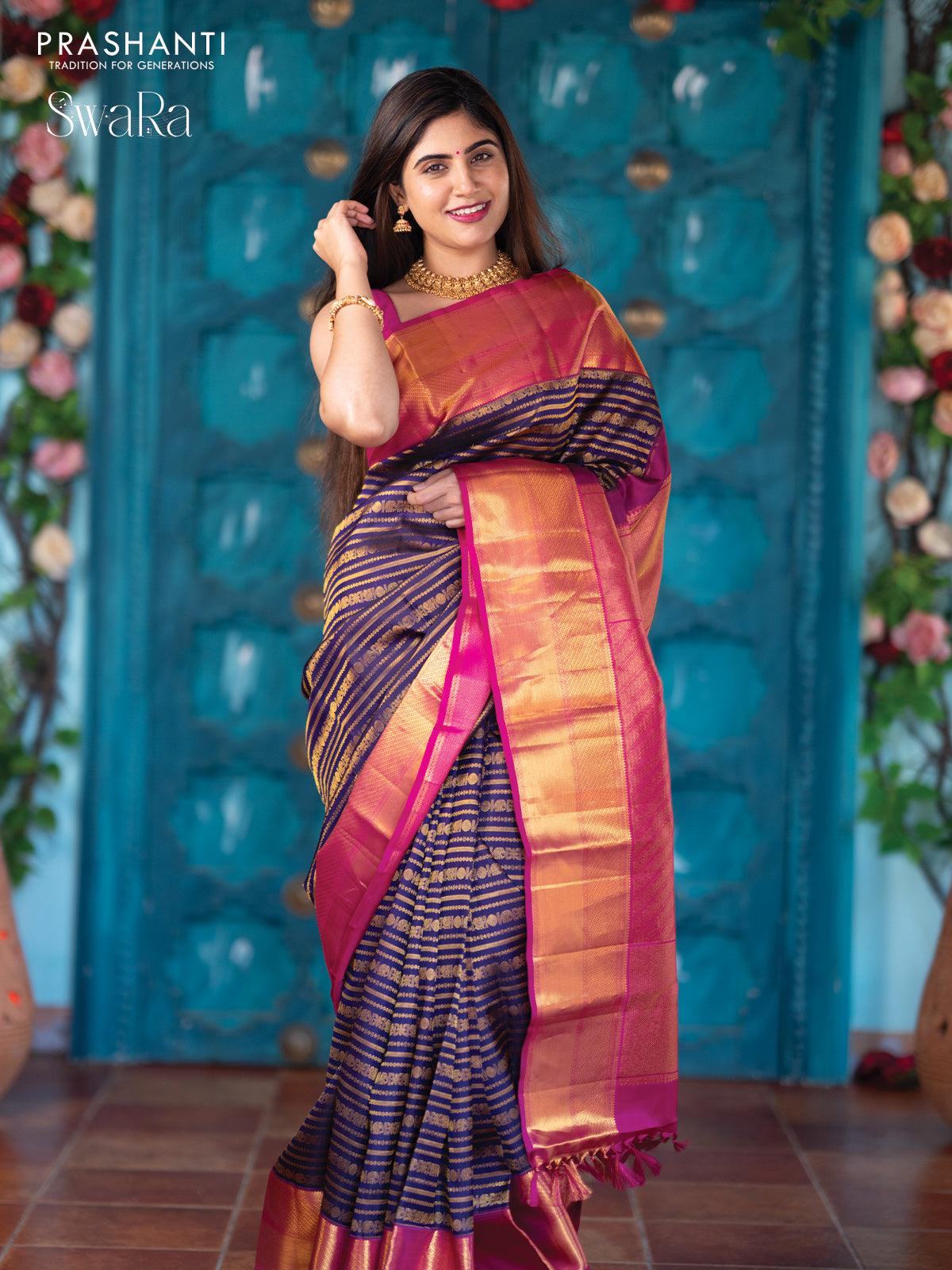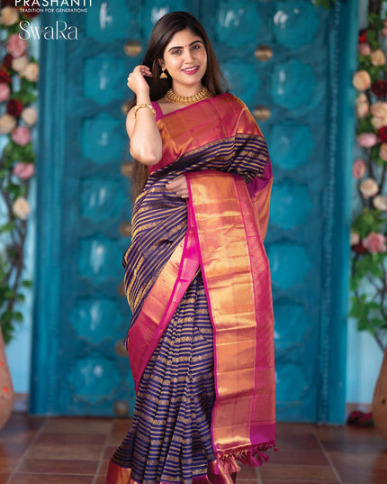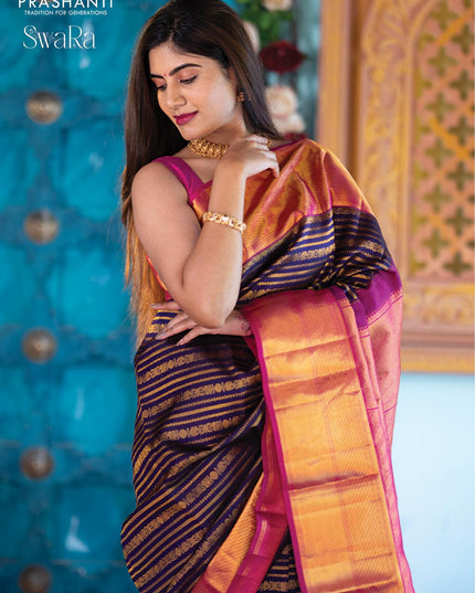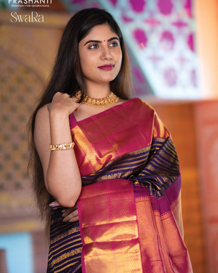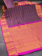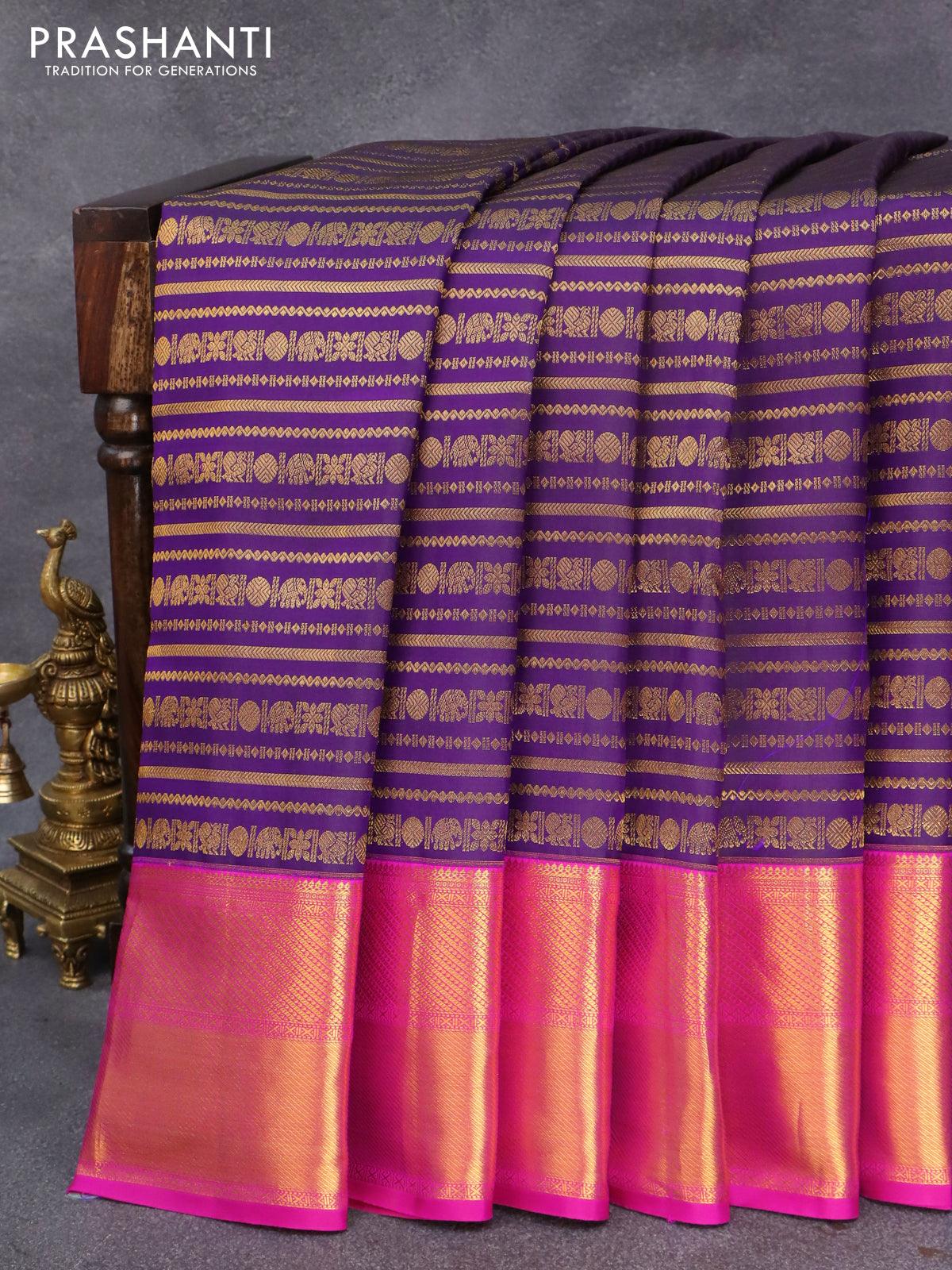 Pure kanjivaram silk saree deep purple and pink with allover zari weaves and zari woven border