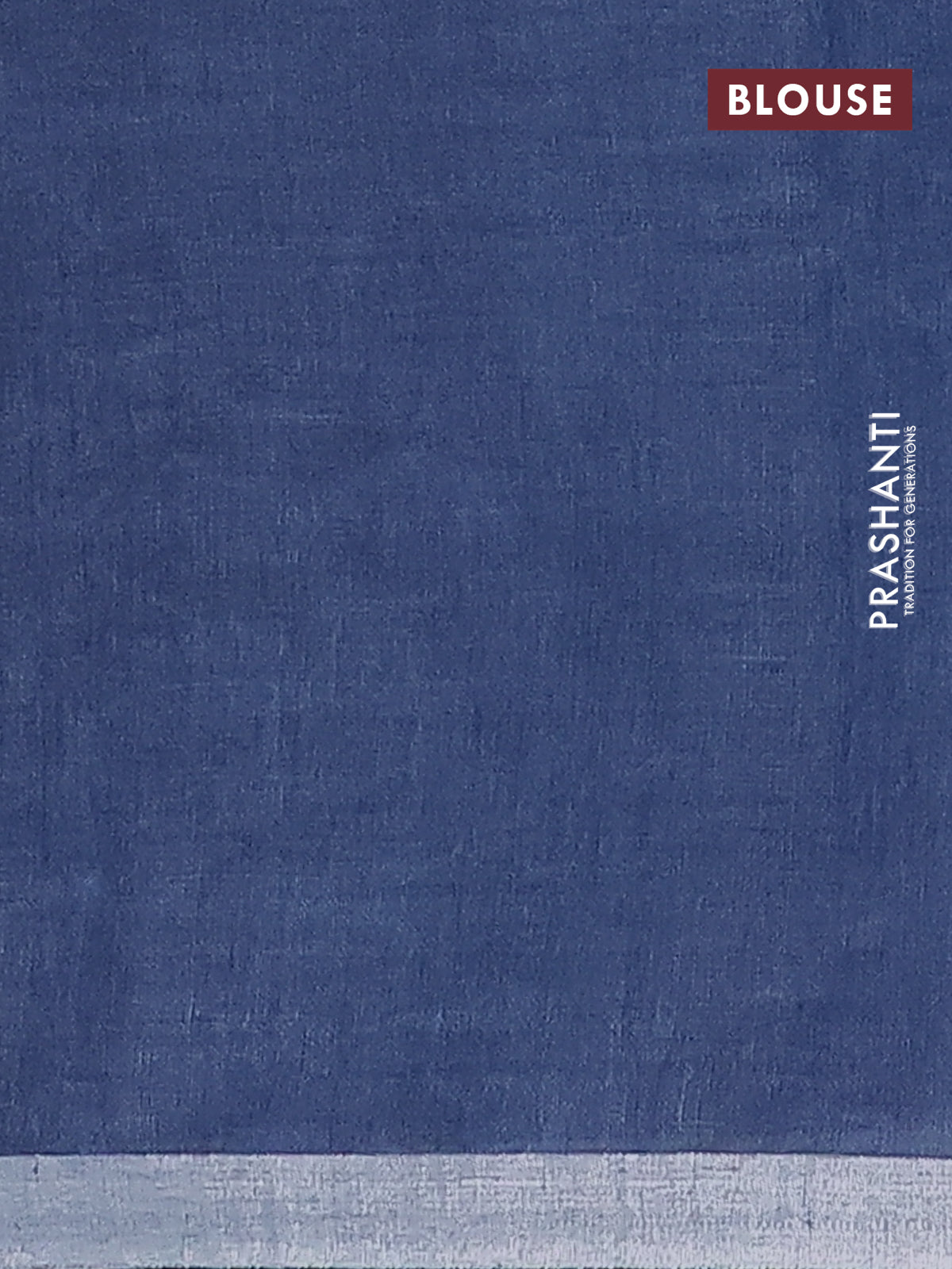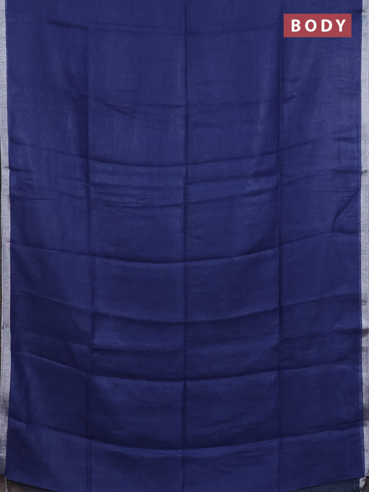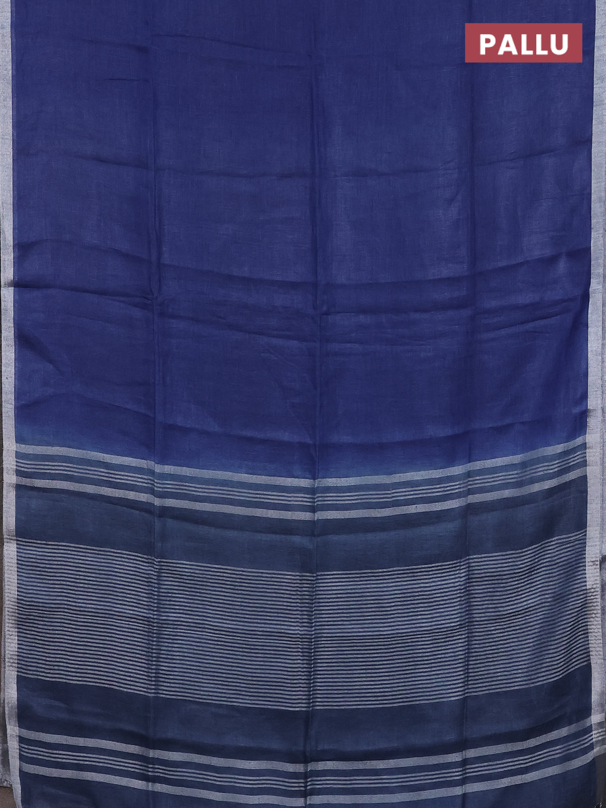 Pure linen saree blue and bluish grey with plain body and silver zari woven border