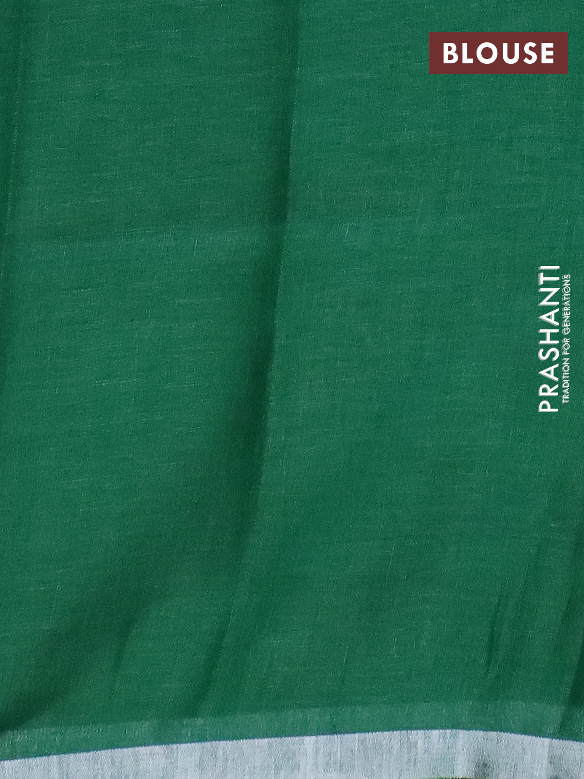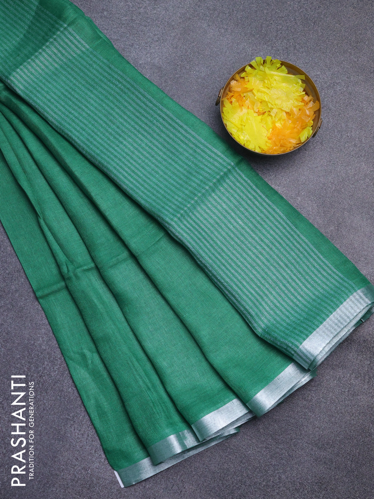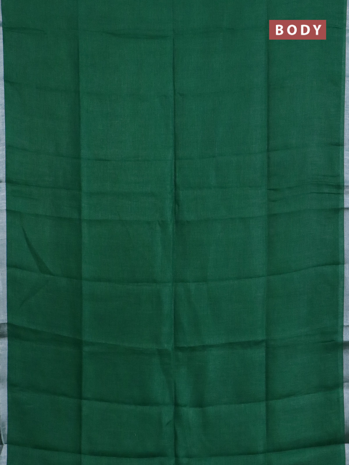 Pure linen saree green with plain body and silver zari woven border