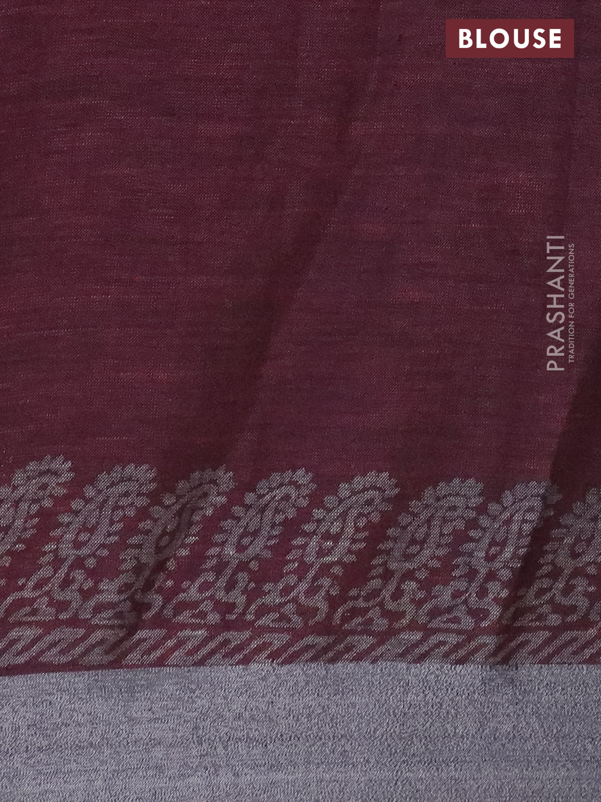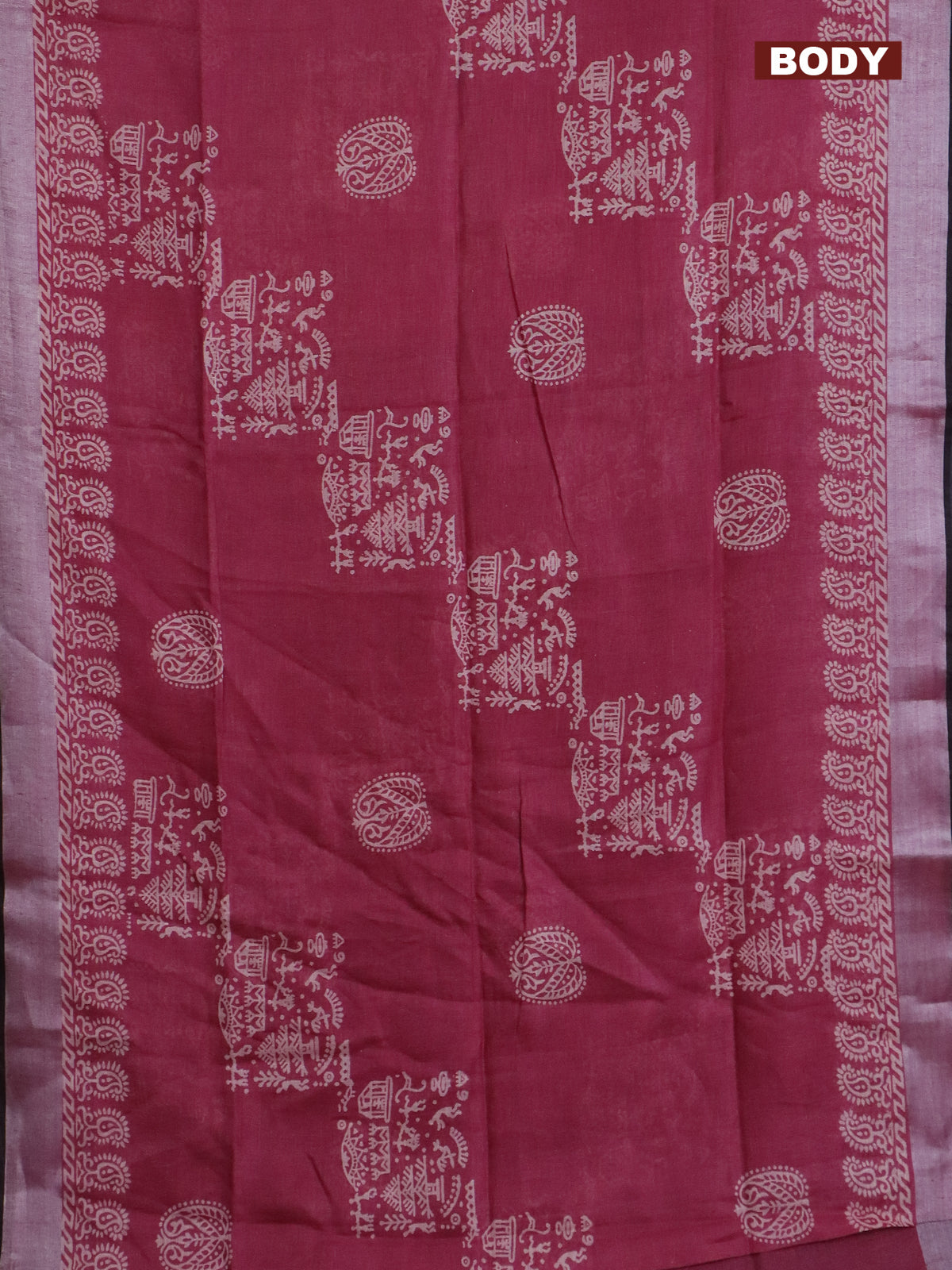 Pure linen saree maroon shade with butta prints and silver zari woven border