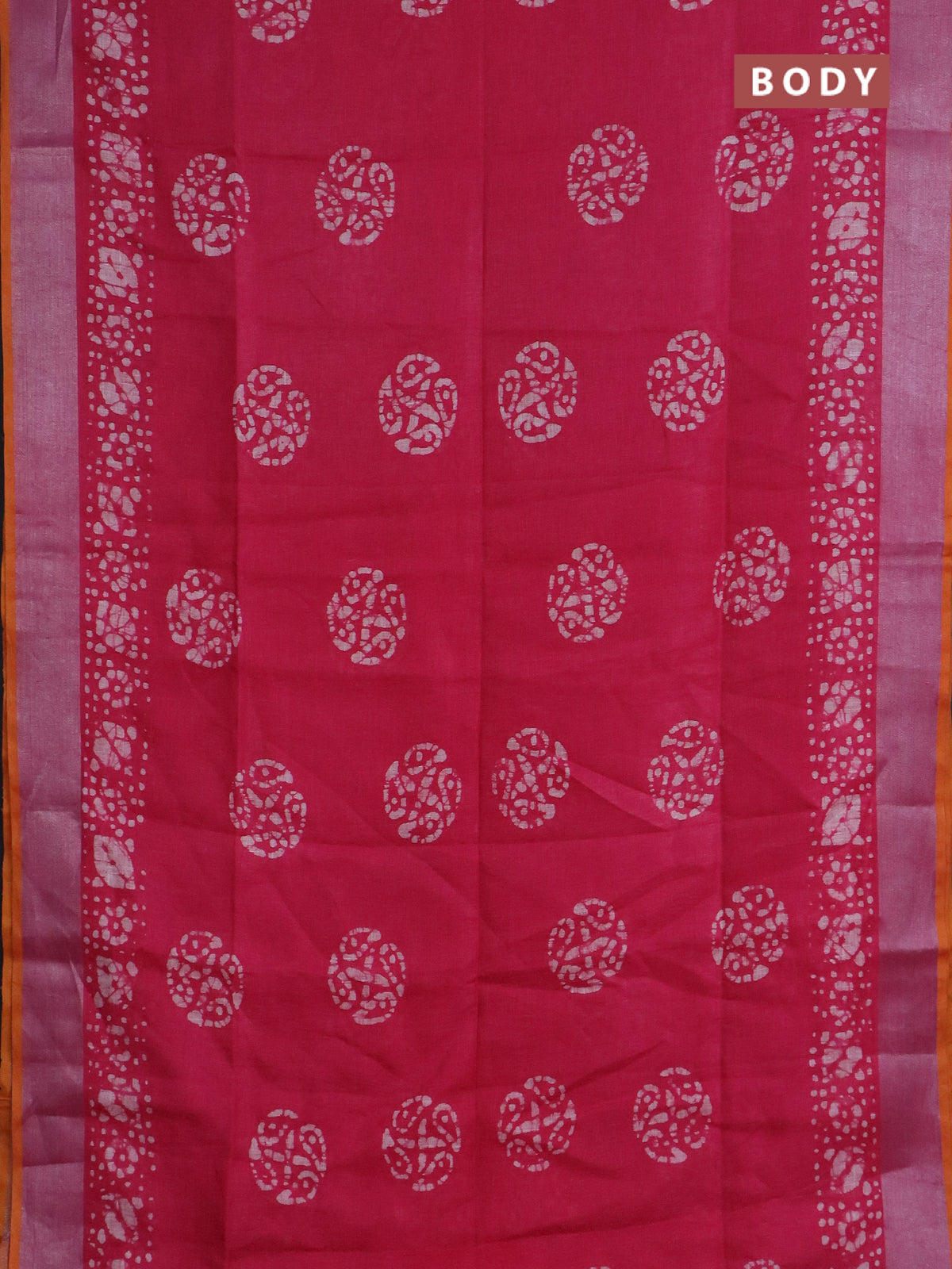 Pure linen saree pink with batik butta prints and silver zari woven border