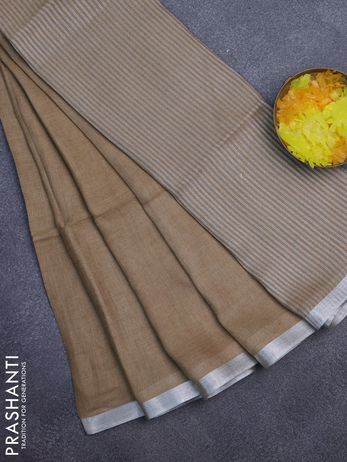 Material :Pure Linen Blouse : Attached Length of saree : 6.2 mts (5.5 mts saree & 70 cms blouse) Wash... Read more