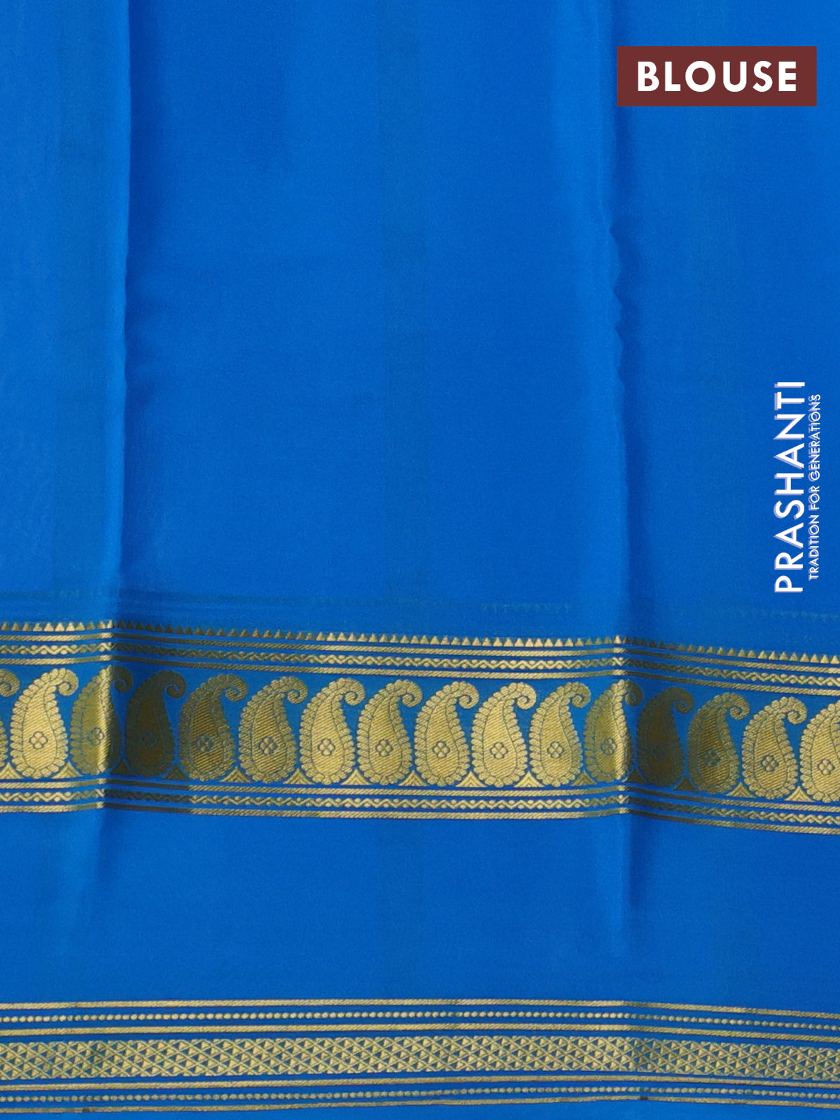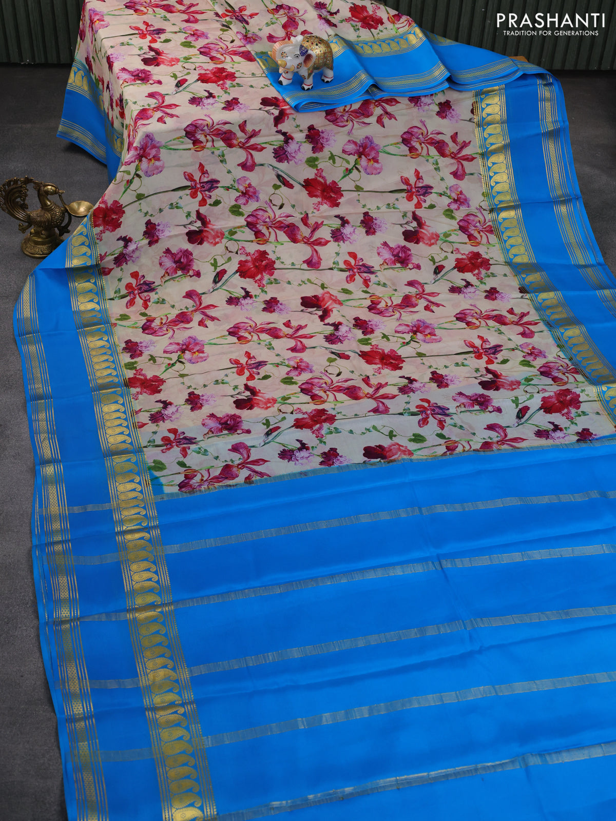 Pure mysore silk saree beige and cs blue with allover floral prints and rettapet zari woven border