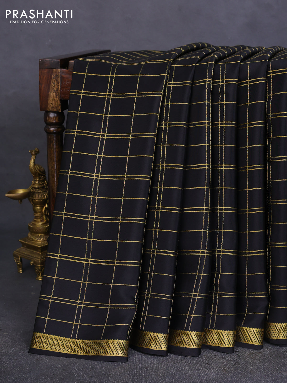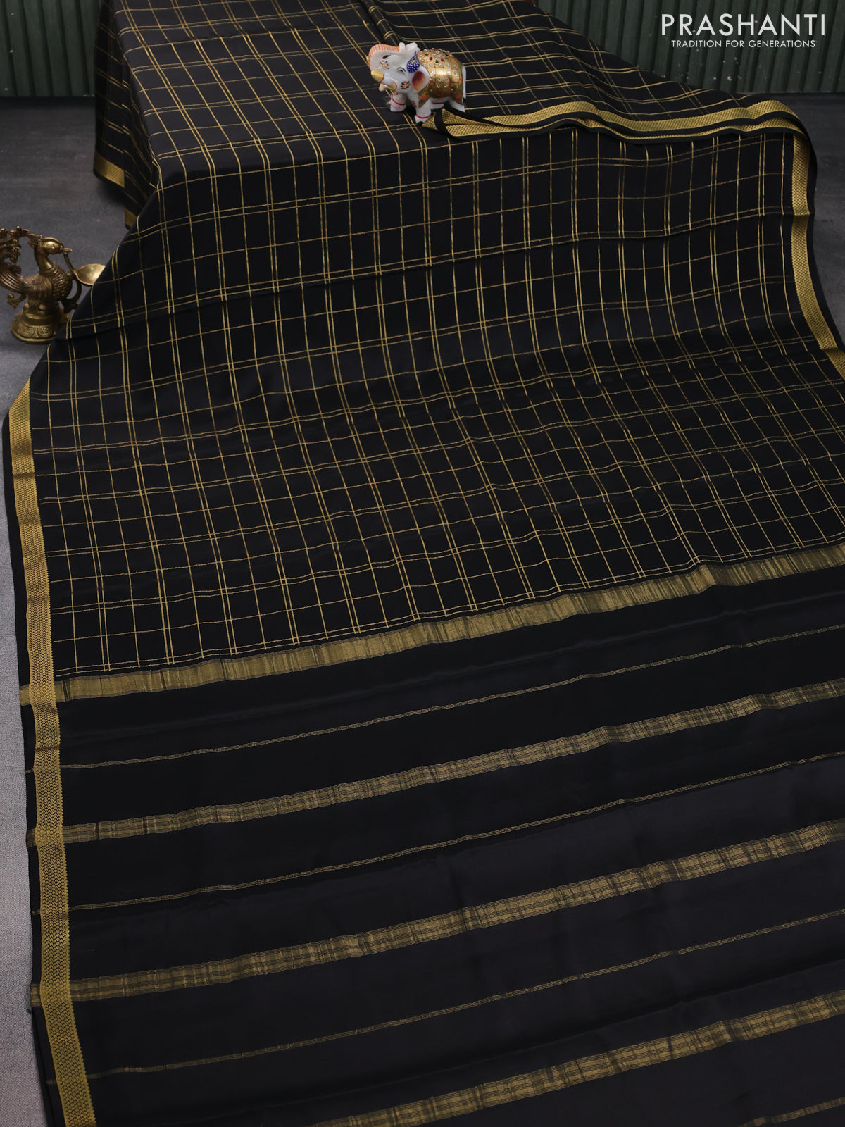 Pure mysore silk saree black with allover zari checked pattern and zari woven border